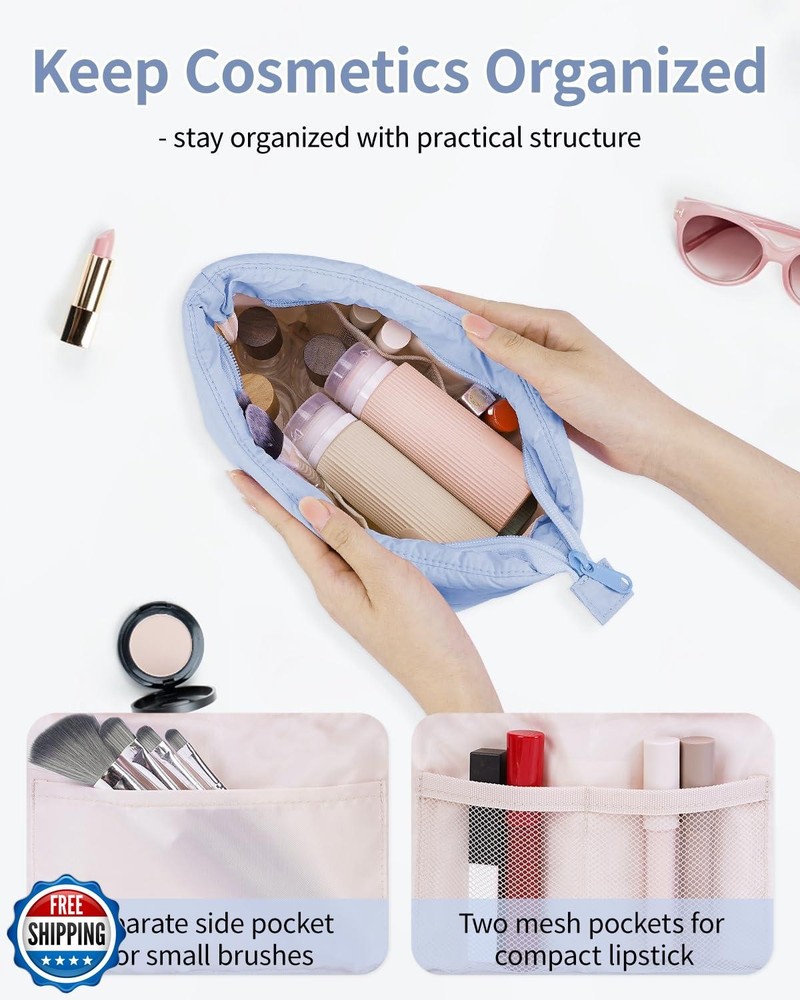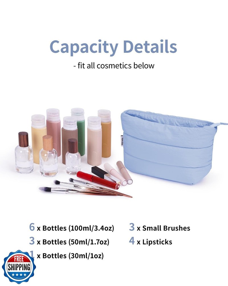 Narwey Puffy Makeup Bag for Purse Travel Women Girl, Puffer Cosmetic Bag Makeup Zipper Pouch, Cute Make Up Organizer Bags, Travel Toiletry Bag Toiletries (Light Blue) Features Decent Size - Please double check the size before purchasing to ensure it meets your expectations and avoid returns. Dimensions 7-10.8 x 6.3 x 3.9 in/17.7-27.4 x 16 x 9.5 cm, weighing only 0.15 lb. Not too big but not too small, large capacity yet compact, great for travel or daily use Makeup Organizer - The spacious design makes it super easy to open fully. Practical main compartment with 3 inner small pockets could neatly hold travel-size toiletries or skin-care products. It could fit sunscreen, 3oz lotion, cream, eyeliners, foundation, concealer, lipsticks, blushes, powder, eyeshadow pallet, mascara, lash curler and sponges Versatile - Sturdy, lightweight, roomy, which makes it great for business trips, travel, home use and more. Great as cosmetic bag, skincare bag, lipstick pouch, cable organizer bag, period bag, and pouch for medium or large purse Premium Puffy Fabric. Made of 100% nylon shell fabric, soft and water-resistant. Durable lining, reliable double zippers, and good stitching. Every detail is delicately made Great Gift Idea. Vibrant colors to choose. Great gifts for teen girls, bridesmaid, sister, teacher, mother, friends and family members on holiday like birthdays, Valentine's Day, Mother's Day, New Year, and Christmas Shipping Free & Fast Shipping: We offer free shipping to most of the USA with a normal delivery time of 3-7 days. However, due to the current situation, additional delivery time (up to 3 weeks) may be required for some items. Alternative Carriers: We may use alternative carriers (e.g., USPS, FedEx, UPS) to ensure your package arrives safely and on time. Due to the use of multiple carriers, we are unable to provide a tracking number automatically. Handling Time: Orders are processed and shipped within 1-2 business days of receiving cleared payment. Shipping Restrictions: Shipping to Alaska, Hawaii, Puerto Rico, Guam, and other US territories may incur shipping charges or delivery restrictions. Please contact us before ordering, or your order can be refunded/cancelled. State Restrictions: Certain items may not be shipped to California due to state regulations. Contact for Tracking Updates: If you require tracking updates or have any concerns about the delivery of your order, please feel free to contact us, and we will be happy to assist you. Return Policy 30-Day Hassle-Free Returns: If you are not completely satisfied with your purchase, you can return the item for free within 30 days of receiving it for a full refund or exchange. Easy Return Process: Contact us, and we will provide you with a prepaid return shipping label and detailed instructions. No Restocking Fee: There are no restocking fees for returns. However, the buyer is responsible for return shipping costs if the return is not due to a seller"s error. Refund Processing: Refunds will be processed within 1 business day of receiving the returned item in its original condition. Feedback Your feedback is extremely important to us. We strive to provide the best products and customer service possible. If you are satisfied with your purchase, please take a moment to leave us a positive review. If you have any concerns or issues with your order, please contact us before leaving negative feedback. We are committed to resolving any problems and ensuring your satisfaction. Contact Us If you have any questions or concerns, please feel free to reach out to our customer support team. You can contact us through the eBay messaging system. We are available Monday to Friday, 9:00 am to 5:00 pm EST, and we will do our best to respond to your inquiry within 24 hours. Thank you for supporting our small family business!