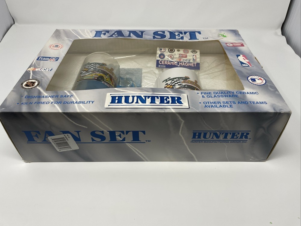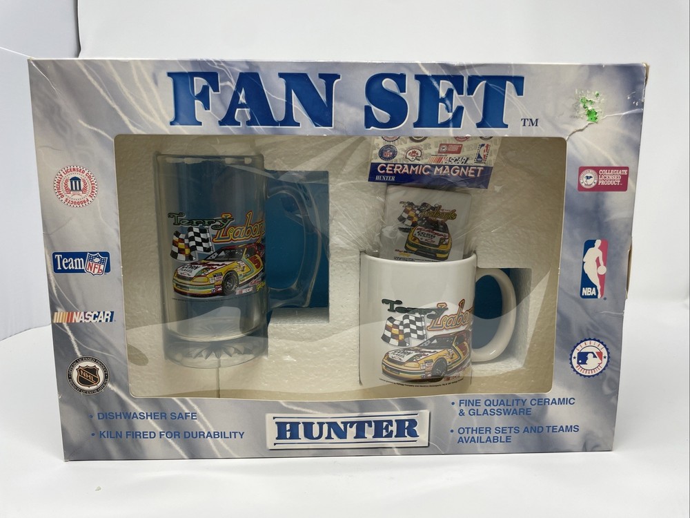 The Nascar Fan Set Terry Labonte Ceramic Mug and Glassware Set is a must-have for any NASCAR fan. This set includes an 8 oz ceramic mug and glassware featuring the colors of the NASCAR league. Officially licensed by Hunter MFG, this unisex adult fan set is adorned with the Darrell Waltrip Racing team logo and is perfect for showing support for your favorite driver. Made in the United States, this set is a great addition to any racing enthusiast's collection.