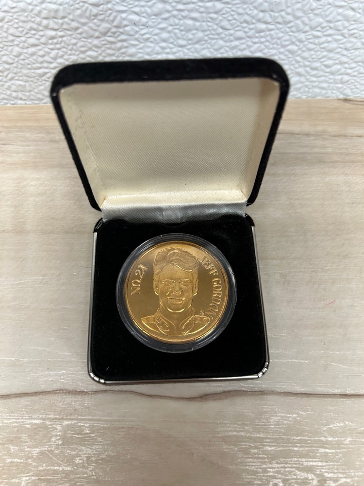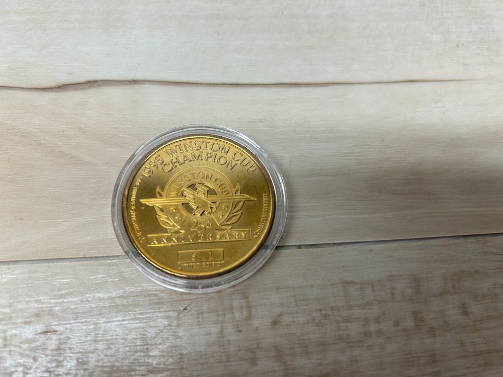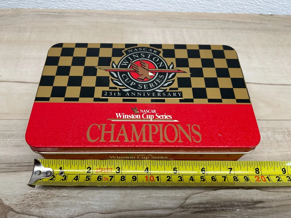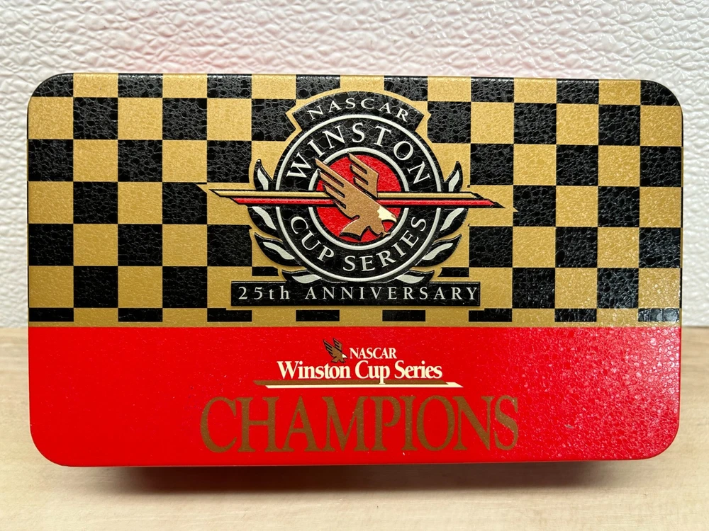 Nascar Winston Cup Series 25th Anniversary Champions Collectible Cards & Coin In Tin Box Set Jeff Gordon.This is collectors item very hard to find.The set includes Jeff Gordon golden coin and 42 collectors cards.The catds have kind of 3D effect WE OFFER COMBINED SHIPPING AND MULTI-ITEM PURCHASE DISCOUNTS.IF YOU HAVE ANY QUESTIONS, PLEASE LET US KNOW