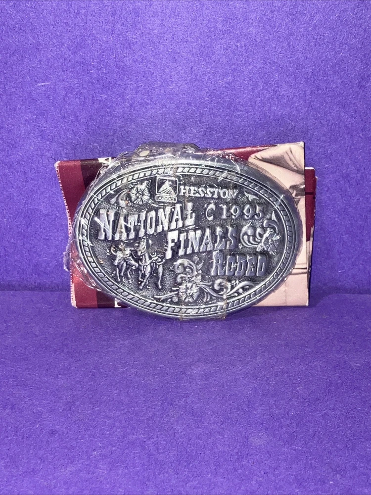 National Finals Rodeo Hesston 1995 NFR Adult Cowboy Buckle, Vintage.. Condition is Pre-owned. Shipped with USPS Ground Advantage.