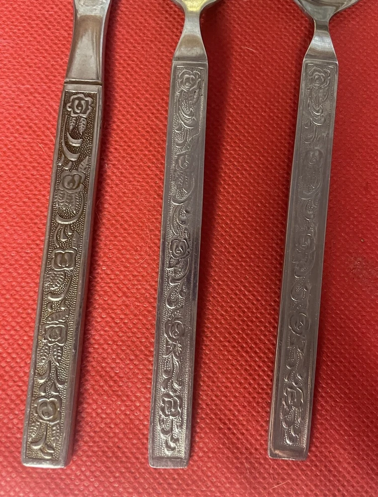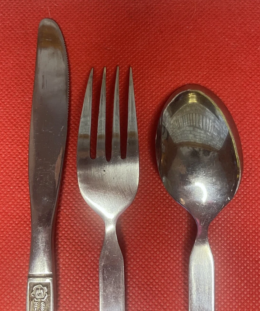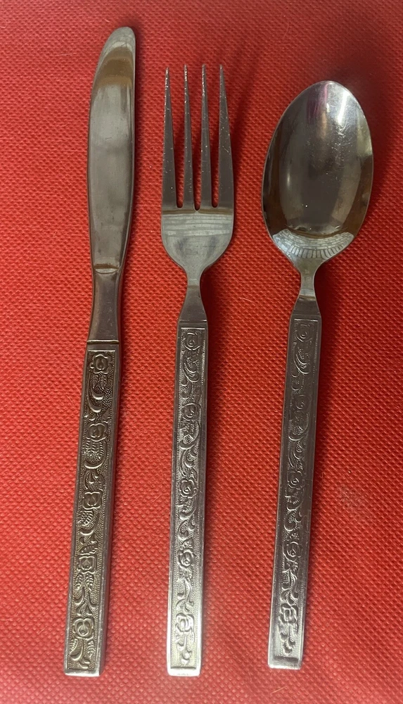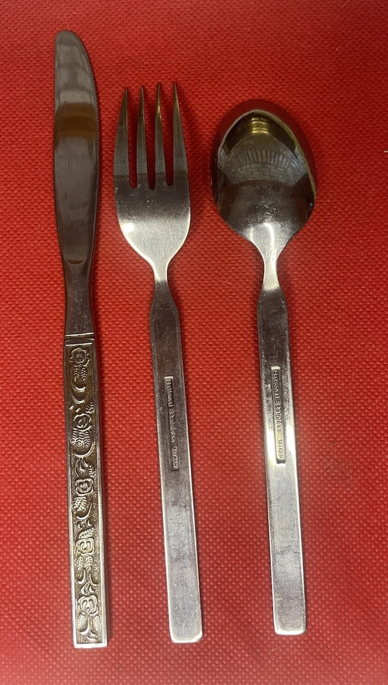 Material: Stainless Steel Brand: National Type: Dinner Knife Fork Spoon Handle Pattern: Floral