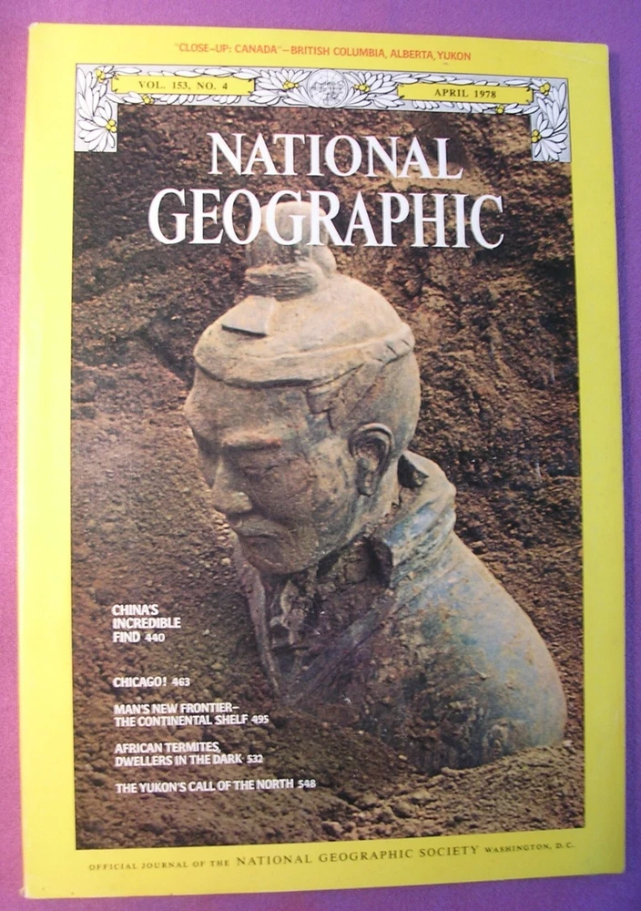 3 National Geographic Magazines dealing with Archeology in China and Egypt. Included are; - April 1978 China's Incredible Find - September 1998 Egypt's Valley of the Kings - April 2001 Egypt's Pharaohs of the Sun Included in the April 2001 issues is a 31" X 20" map of the subject area Multiple Purchases can be combined for reduced shipping Costs. Email me before purchasing for details.