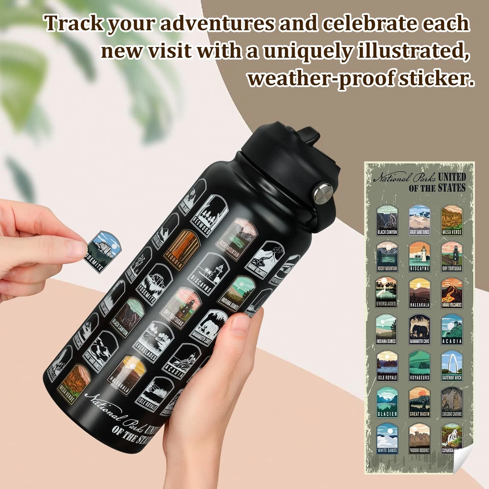 ★UNIQUE NATIONAL PARKS DESIGN: Capture the beauty of every national park with our unique sticker set. Hand-drawn by a talented artist, each of the 63 designs showcases iconic park features, turning your water bottle into a personalized adventure journal. ★PERFECT GIFT FOR NATURE LOVERS: This set is the ideal gift for national park enthusiasts. With every visit, they can add new stickers, creating a personalized collection that reminds them of their adventures and inspires future travels. ★WATERPROOF AND TEAR-RESISTANT STICKERS: Built for the adventurer, our stickers are waterproof and tear-resistant, ensuring they stay intact and vibrant even in the toughest outdoor conditions, allowing you to enjoy your national parks water bottle worry-free. ★EXCEPTIONAL INSULATION: Our innovative insulation technology ensures that your 32-ounce liquid stays cold for up to 24 hours and hot for up to 12 hours, outperforming competitors and keeping you refreshed during all your outdoor activities. ★DURABLE ENGRAVED BOTTLE: The national parks water bottle features permanently engraved designs, highlighting all 63 unique stickers. This durable bottle guarantees a lasting impression, whether it’s adorned with stickers or standing alone as a decorative piece.