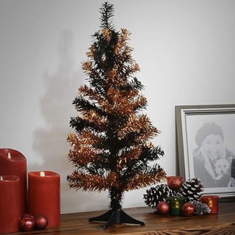 HomeNational Tree Company 24 In Tinsel Tree Halloween Seasonal Holiday Orange Black