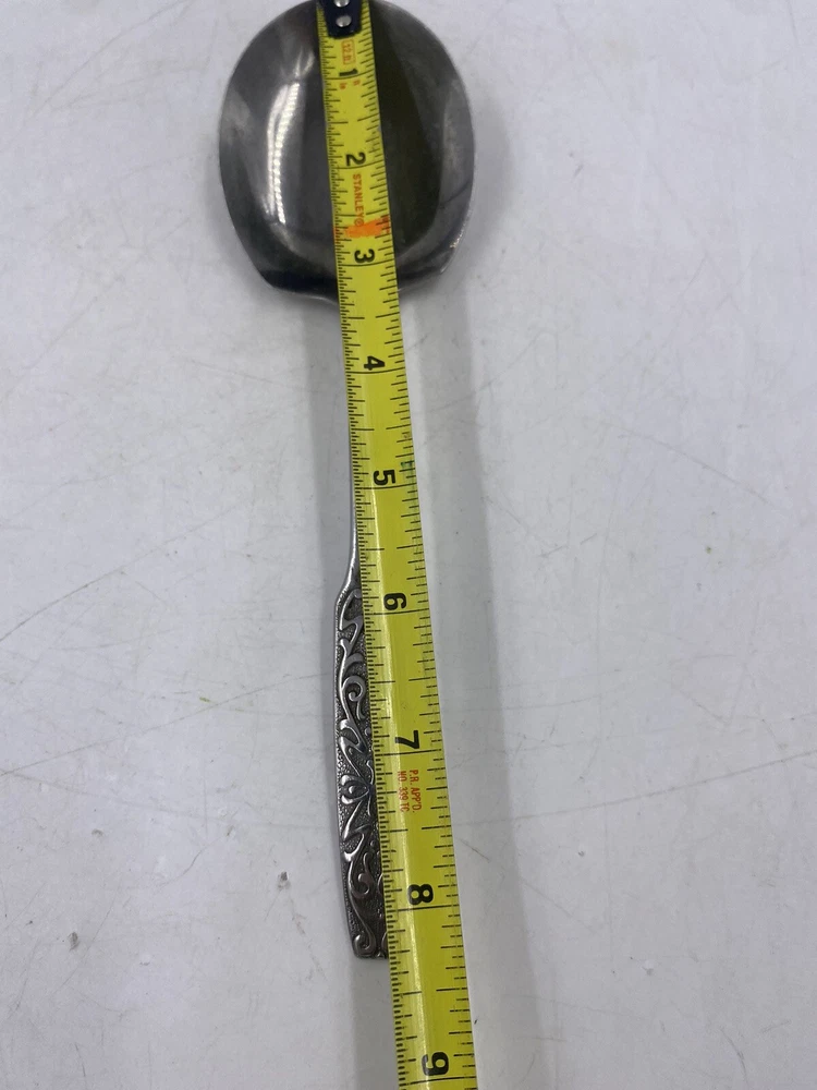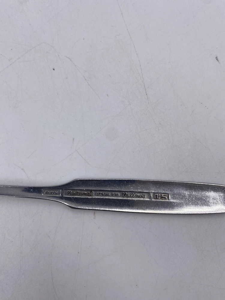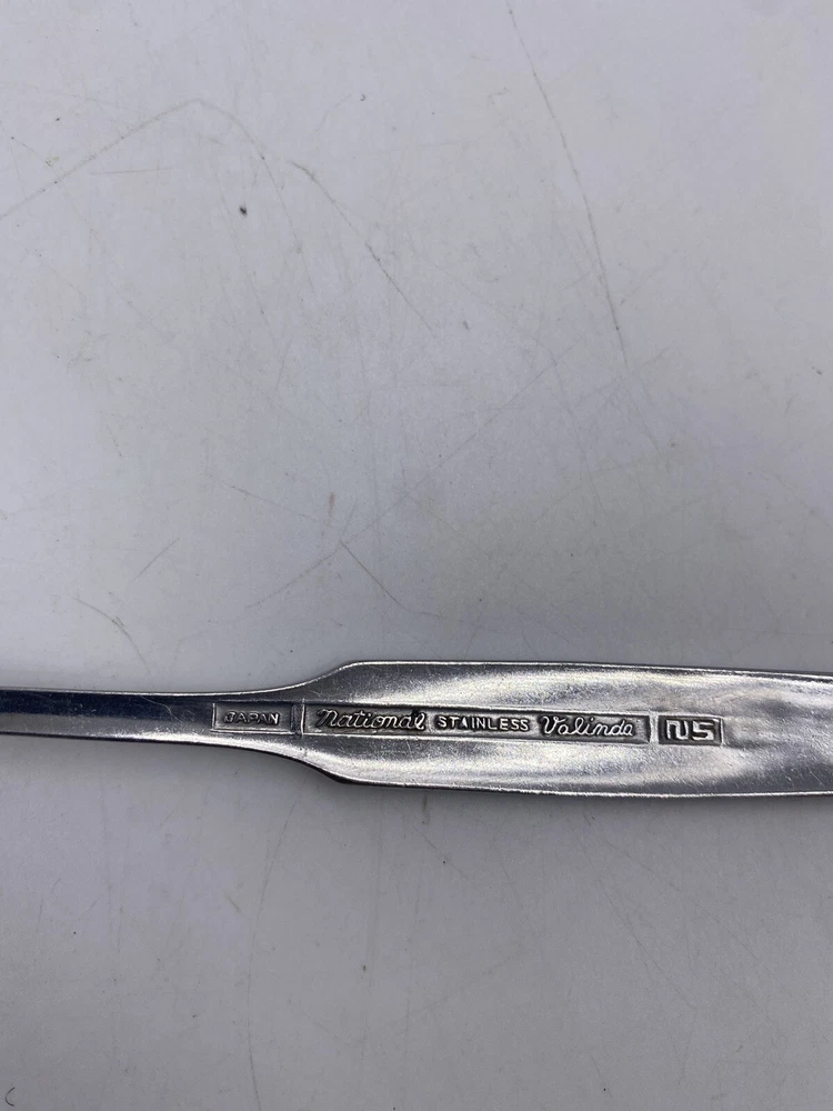 This National stainless Valinda Serving spoon made in Japan is in good overall condition. It does have normal signs of age and use. It has light scratches on front and back. You get the actual item pictured so please look at all photos and ask any questions before purchase.