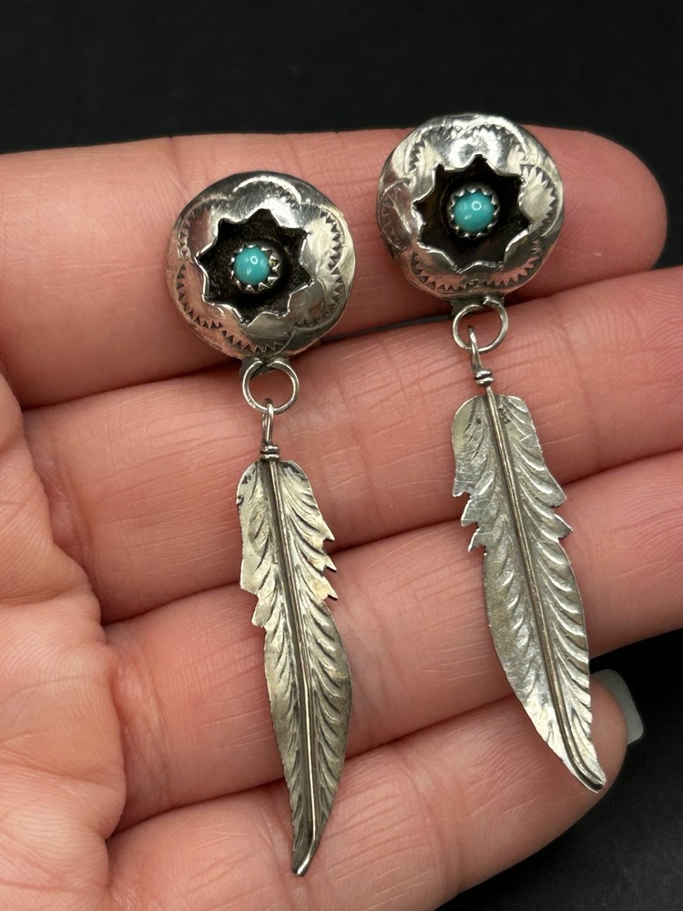 $ 105.6Vintage Native American Sterling Silver Turquoise Dangle Earrings Navajo Zuni...