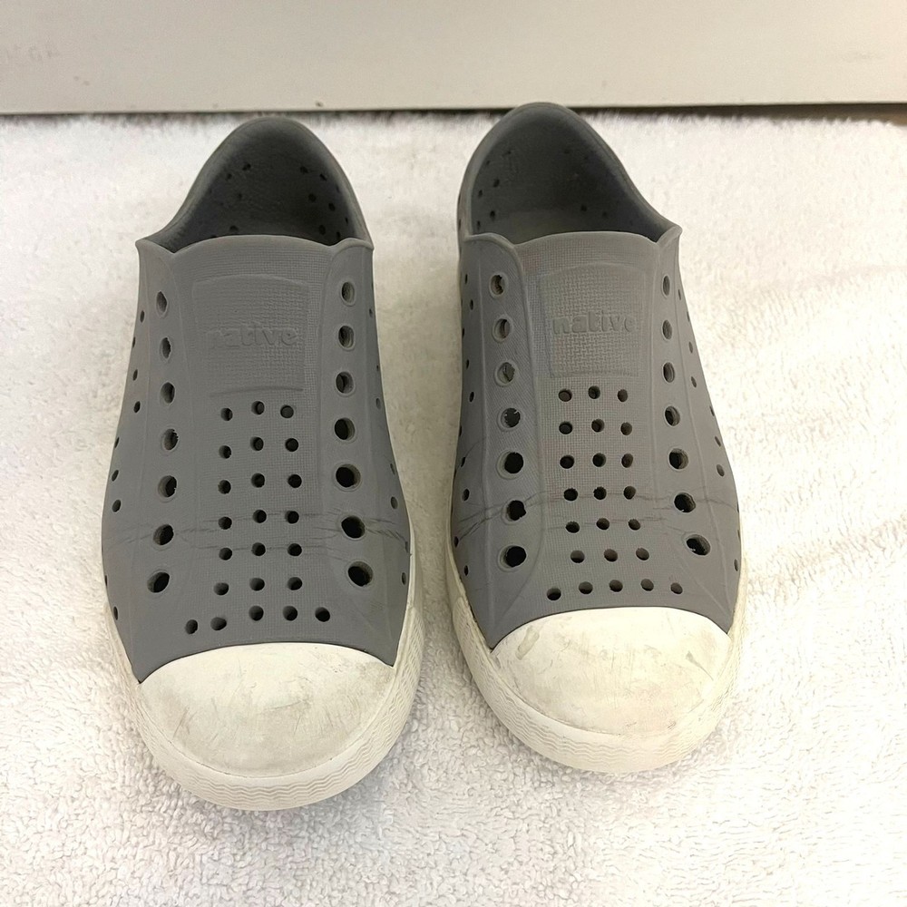 Keep your little one comfortable and stylish with these Native Shoes Unisex Kids Slip-On Sneakers in size C13. Designed for active kids, these lightweight sneakers feature an easy slip-on design, durable EVA construction, and a water-friendly material perfect for everyday play, beach days, or school wear. Product Details: Brand: Native Shoes Style: Slip-On Sneakers Color: Gray Size: C13 (Toddler/Youth) Gender: Unisex (Boys & Girls) Material: EVA (Waterproof & Washable) Features: Lightweight, Breathable, Easy to Clean, Odor-Resistant Condition: Pre-owned, gently used, clean, with normal wear (see photos) These Native slip-ons combine comfort, convenience, and durability—perfect for kids always on the go!
