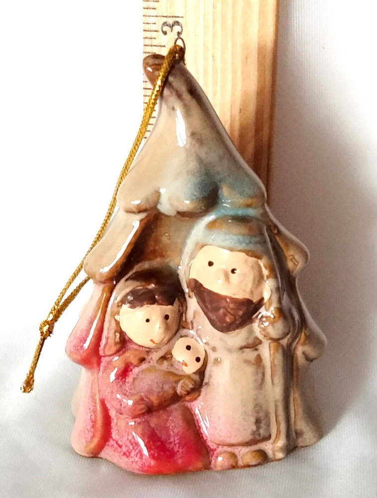 Celebrate the festive spirit with this charming Nativity Christmas Ornament Bell. Crafted from high-quality ceramic, this medium-sized ornament features the Holy Family - Baby Jesus, Virgin Mary, and Joseph - nestled within a beautifully designed Christmas tree shape. Its multicolored palette adds a vibrant touch to your holiday decor, ensuring that the true meaning of Christmas is subtly yet elegantly displayed.This decorative piece is not only a figurine but also a functional hanging ornament, perfect for adorning your tree or any space that needs a touch of the holiday theme. With its intricate details and hanging feature, it makes a wonderful addition to your collection or as a thoughtful gift for someone special during the season of giving.