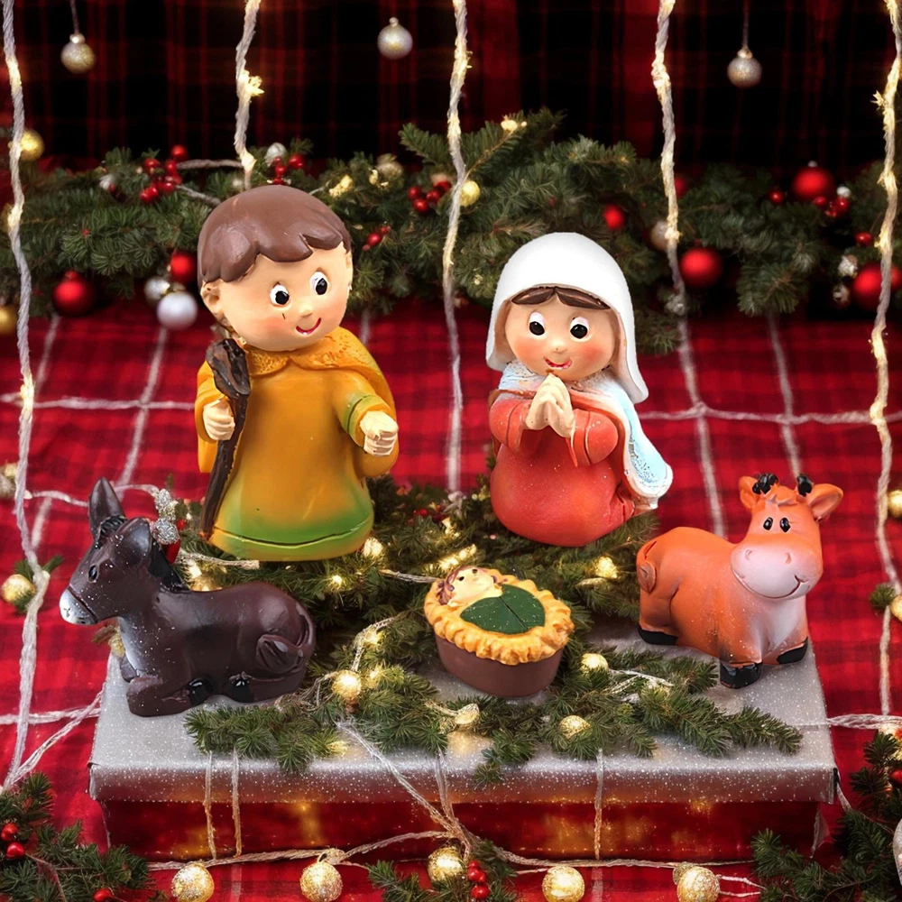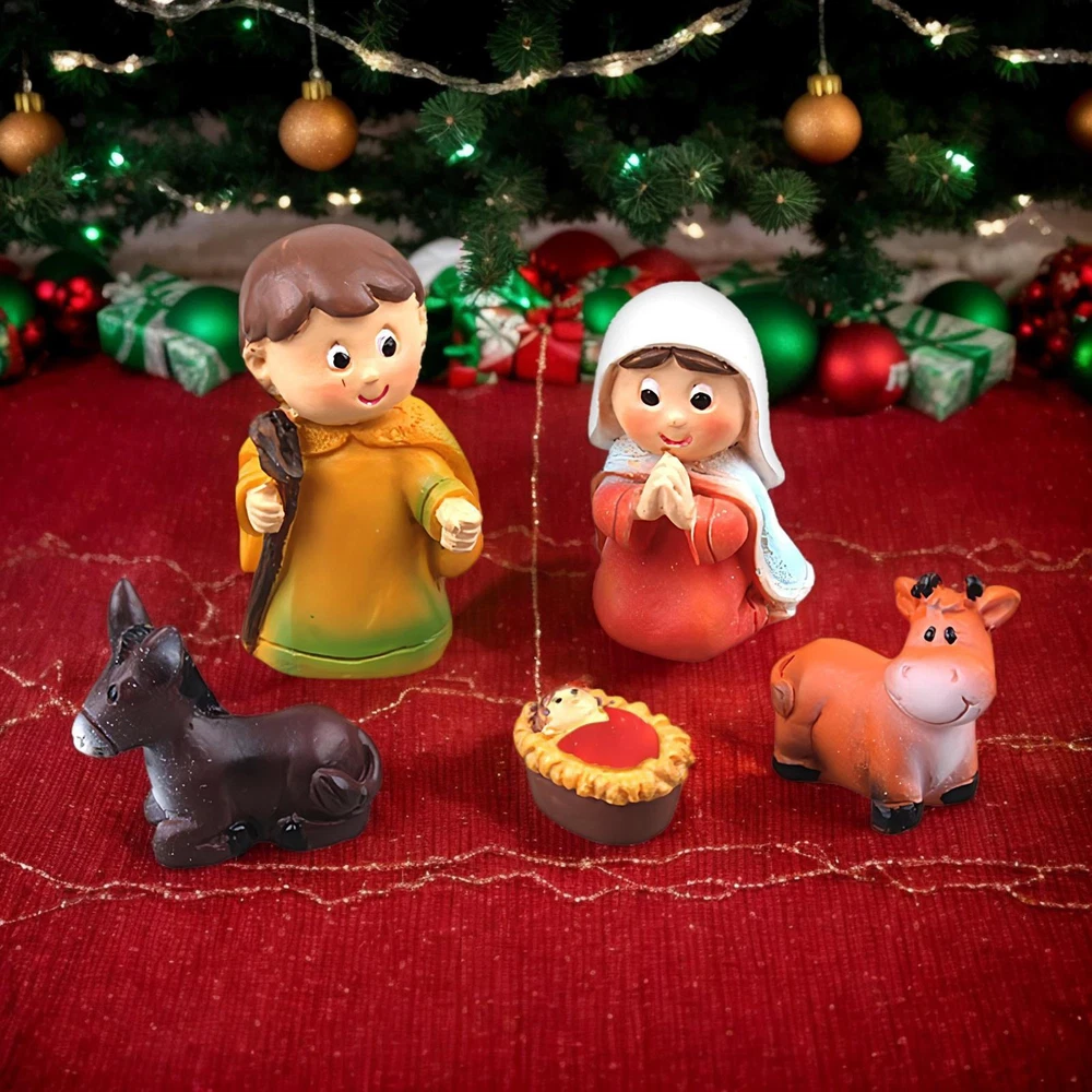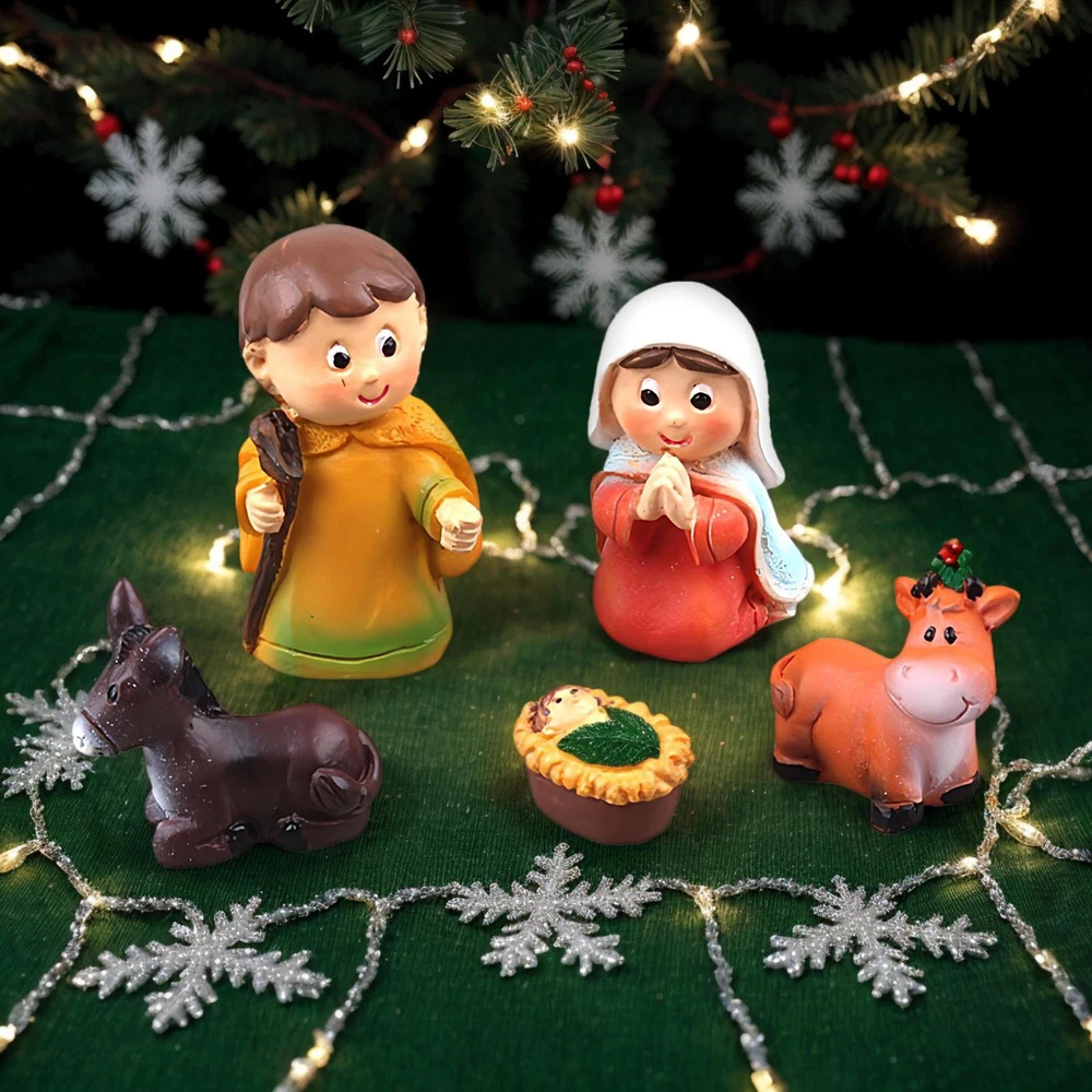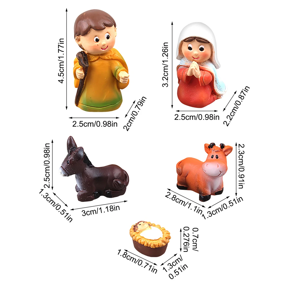 Bullet Points: Elaborate Craftmanship: Crafted from eco-friendly resin, this stunning nativity scene with meticulous details is waterproof, wear-resistant, and fade-resistant, bringing each figure to life Reflects The Essence: Classic design with 5 separate sections, showcasing Baby Jesus, Mary, Joseph, alongside sheep and donkey, reflecting the cherished Christmas story Add Color To Your Home: Displaying the Christmas nativity scene figurines expresses the ideals shared among family members of love, faith, and devotion. The intricate details of this set make it a perfect centerpiece for any home, being both a decoration and educational tool for the whole family Wide Range of Uses: Transform your holiday decor with our Nativity scene figurines. Create a cozy atmosphere by placing it on bookshelves, desktops, or nightstands. Use it as a centerpiece on family dinners or add a festive touch on your kitchen shelf. A versatile decorative piece to elevate your holiday charm Surprising Present: Celebrate the holiday season in a meaningful way with our Christmas nativity scene figurines. Each piece symbolizes blessings and respect, a perfect choice for those who cherish their faith. Share God's grace and love with this thoughtful religious presentthat expresses affection and respect This Christmas nativity scene is beautifully crafted with meticulous details, including Baby Jesus, Mary, Joseph, sheep, and donkey. It shares religious values at home and can be placed in the kitchen, on a bookshelf, or anywhere you like. Perfect for the holiday season, this figurine set makes a thoughtful and meaningful choice for anyone who values the true meaning of Christmas. Specification. Name: Christmas nativity figurine Material: resin Product size: about 2.5x2x4.5cm/0.98x0.79x1.77 inches (see picture for specific size) Quantity: 5 pcs Packing List Christmas nativity figurine x 5