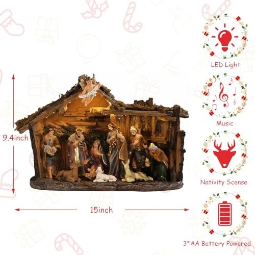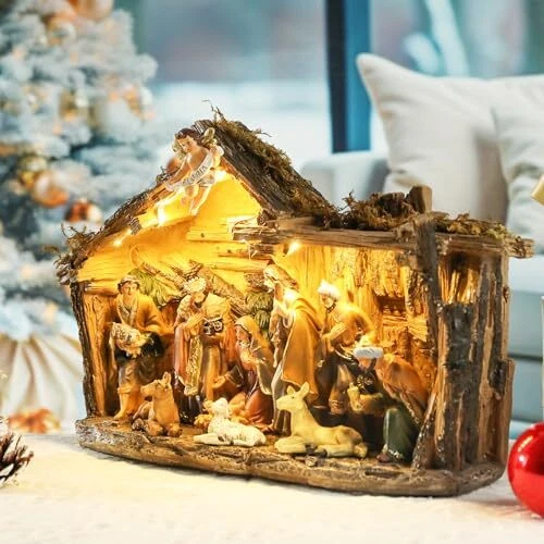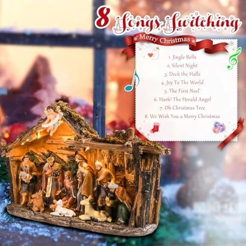 Return Policy Fast Delivery Trusted seller Nativity Set for Christmas, Nativity Sence Resin Figurines Ornaments Set with LED Light Tabletop Nativity Scenes Xmas Gifts Collectibles for Christmas Holiday Decorations Product Description 【100% Resin Nativity Set】-The nativity village is made of durable resin materials, it's not easy to break and crack.The resin crafts have smooth lines and bright textures ,the LED string lights on the eaves illuminate the Nativity. 【Nativity Set Village】- Nativity set includes Baby Jesus, Mary, Joseph, the Three Wise Men, a shepherd, an angel, a cow, a donkey, and a lamb.It's perfect for displaying on a mantel at Christmas night to celebrate Christmas and teach children the story of Jesus' birth at the same time. 【Battery Powered】- The Christmas Village House is powered by a 3*AA batteries (not included)which can place it anyw you want.Ensuring hassle-free setup without the need for cords or outlets. 【Perfect Christmas Decoration】- The Christmas Village Village House is creates a fairy tale Christmas atmosp. It's perfect for displaying on a mantel at Christmas night to celebrate Christmas and it's a great ideal gift for friends and family. 【Friendly Customer Service】- If you have any Problems, please Contact Us.We can offer free return or replacement! We wish you a MERRY CHRISTMAS! Shipping Returns Payment Shipping Shipping is FREE to all addresses other than APO/PO boxes in the lower 48 states. All our stock ships from US-based warehouses. Shipped via USPS or UPS (depending on location and package weight) Unless stated otherwise, all orders will ship within 24-72 hours of your payment being processed. Check our feedback to see the great reviews of FAST shipping we offer. Returns Seller does not accept returns Payment We currently accept payment via eBay managed payments only. Once payment is cleared, we will dispatch your shipment within 1-3 business days. Please refer to the "Shipping" tab for more information regarding shipping speed to your destination.