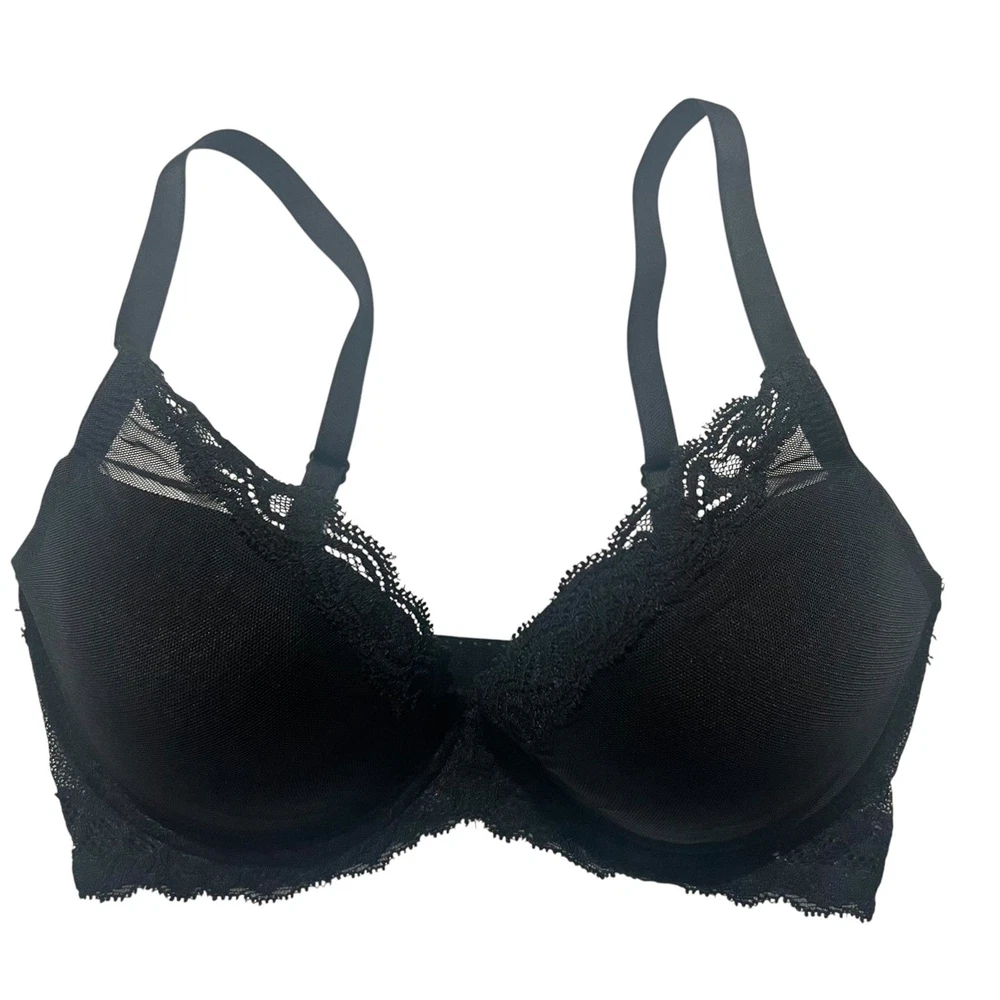 Natori Feathers Mesh Lace Contour Plunge Padded Underwire Bra Black sz 32DD NWOT new without tags n300 v611
