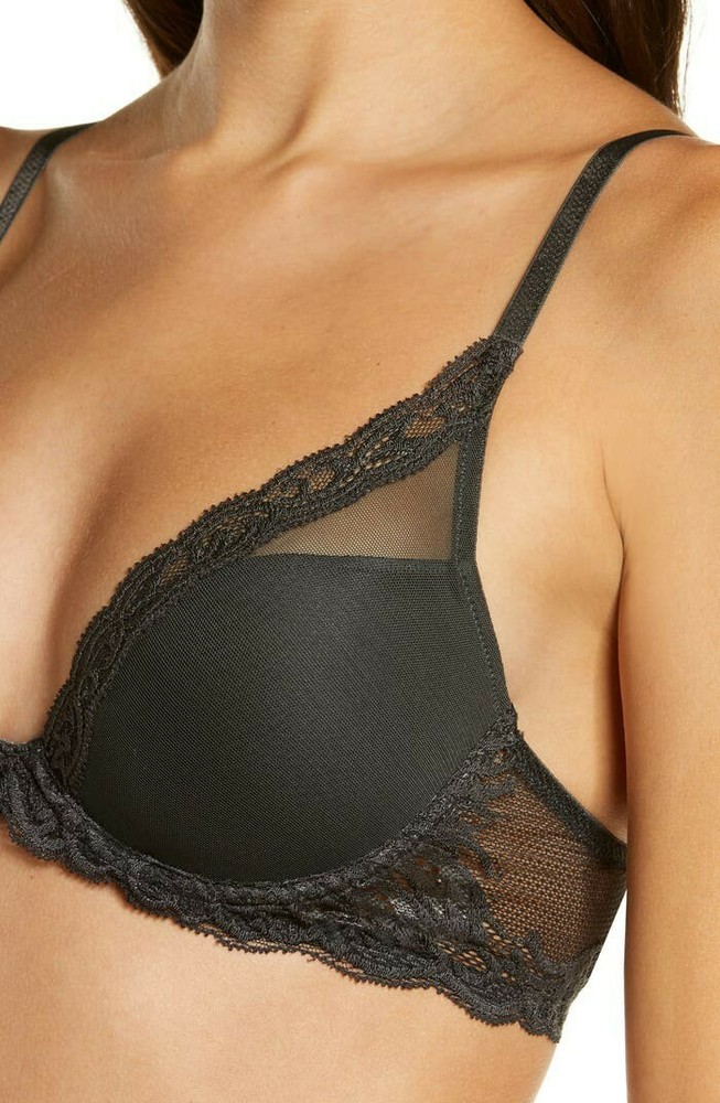 This is for One (1) Natori ® 730023 Feathers Underwire Lace Plunge Contour Bra Size: 34 G (4D's) Dainty lace trims a deeply plunging underwire bra designed with lightly padded cups. Natori's underwire bra features a plunging neckline that goes perfectly with all your low-cut tops and dresses. Sheer feather lace trim adds a sexy touch. This deep plunge bra features beautiful scalloped lace trim along the top and bottom of the cups for pretty appeal. Seamless sides for a smooth look under clothes. Very comfortable, and light as a feather! Style #730023 Deep Plunge Contour Underwire Bra Bra only, bottoms are not included. Contour underwire cups support and shape your breasts. Cups are covered with mesh overlay. Straps are set wide for a sexy, open neckline. Lace with embroidered "feathers" on the sides, back and center panel. Adjustable straps for the perfect fit! Hook-and-eye back closure: 3 columns, 3 rows of hooks Color: COAL (dark grey) US Size: 34 G (DDDD) Cups are measured two ways in lettered sequence OR D's (E=DD, F=DDD, G=DDDD) Original retail price $70.00 "We Ship Our Items In Boxes To Protect The Cups & Underwires" Comes from a Smoke-Free and Pet-Free-Environment. Item will be shipped via USPS. Delivery Confirmation and Tracking are Included. Please contact me with any questions. Stores