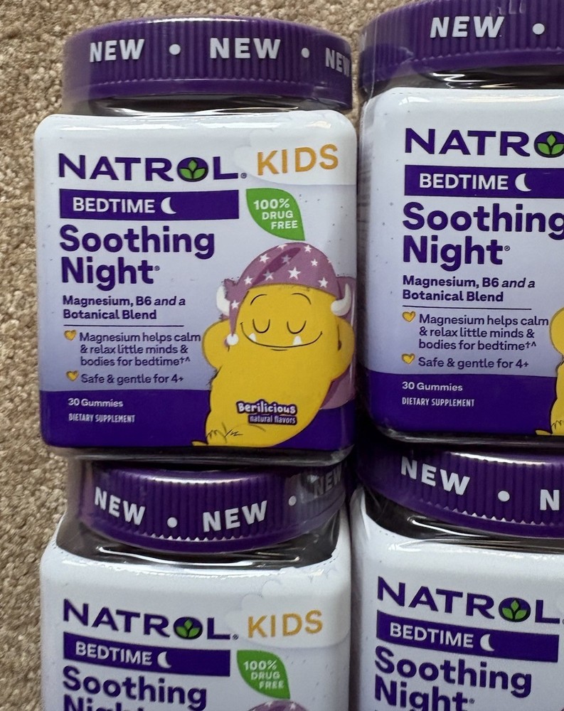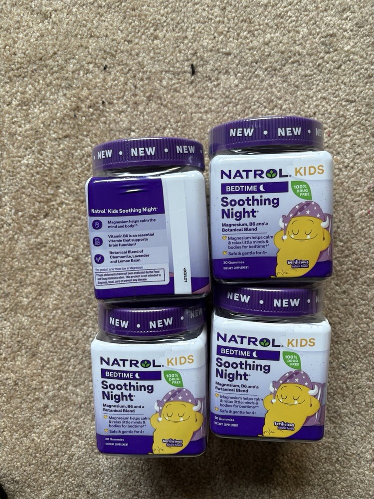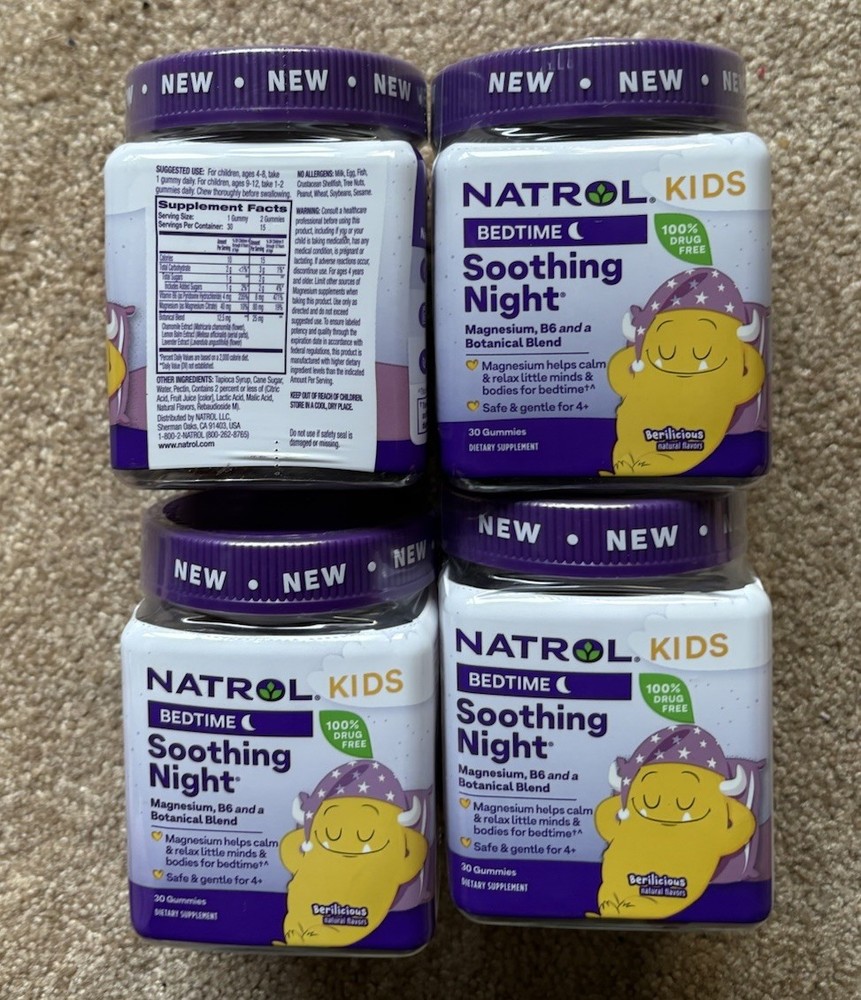Natrol Kids' Soothing Night Melatonin-Free Sleep Mixed Berry 30 gummies exp:6/26. Set of 4