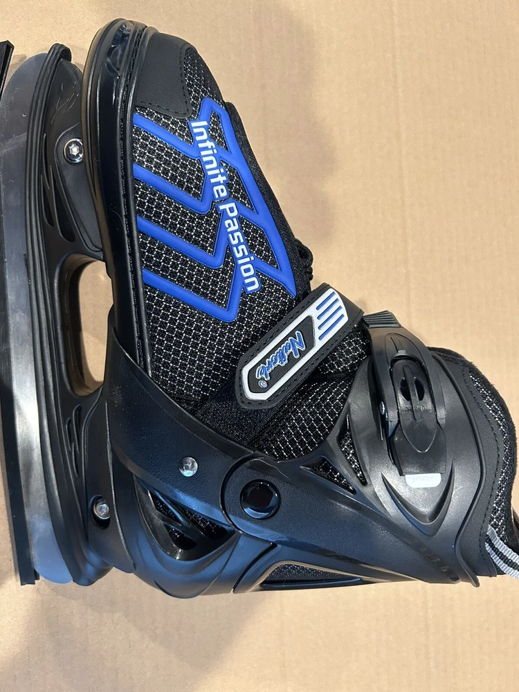 Type: Recreational Skates Custom Bundle: No Age Group: Youth Closure: Hook & Loop, Lace, Cuff Buckle Features: Abrasion Protection Sport/Activity: Ice Skating Liner Material: EVA Foam MPN: Does not apply Color: Black/Blue Liner Type: Standard Shell Type: Soft Brand: Nattork Size: L Wheel Material: Polyurethane
