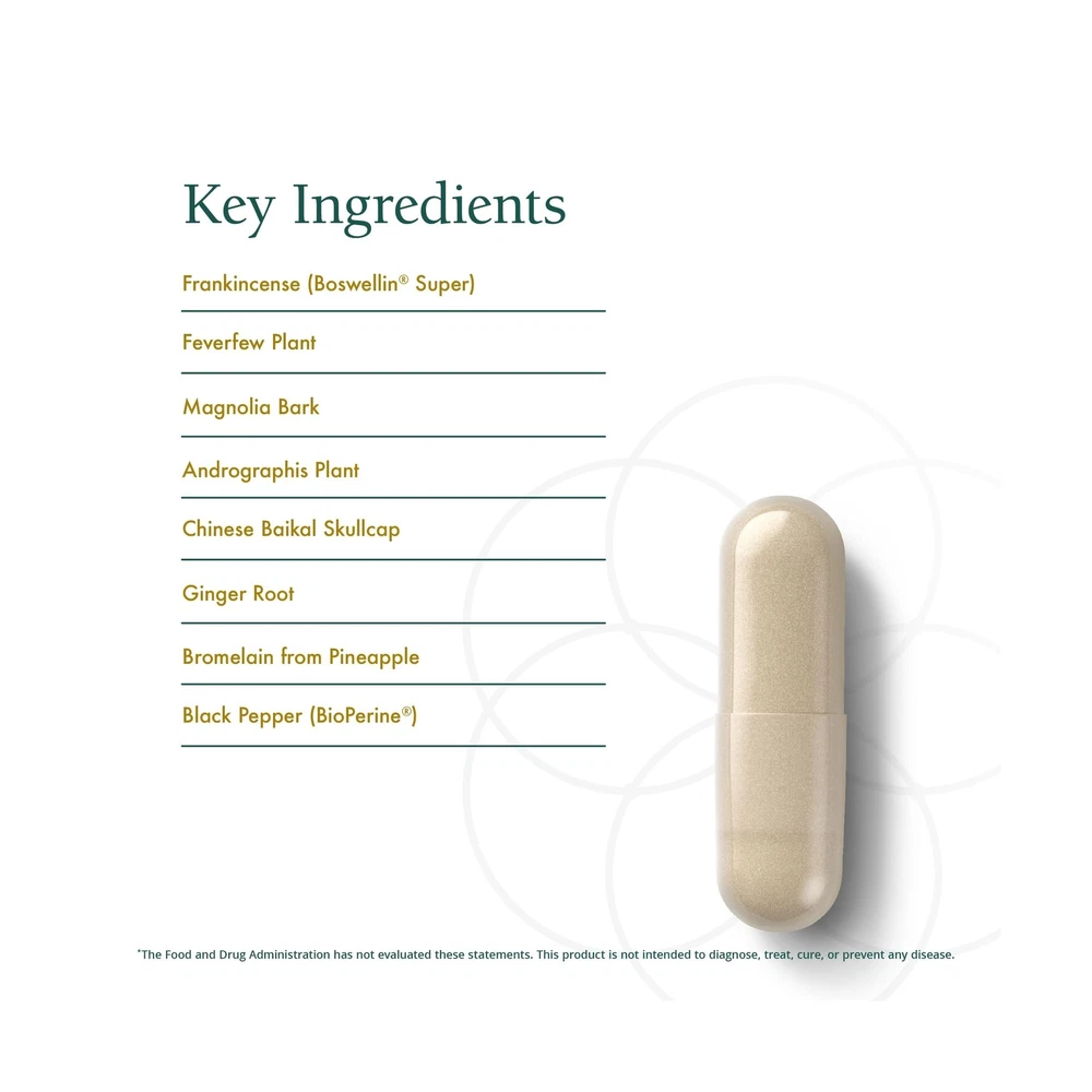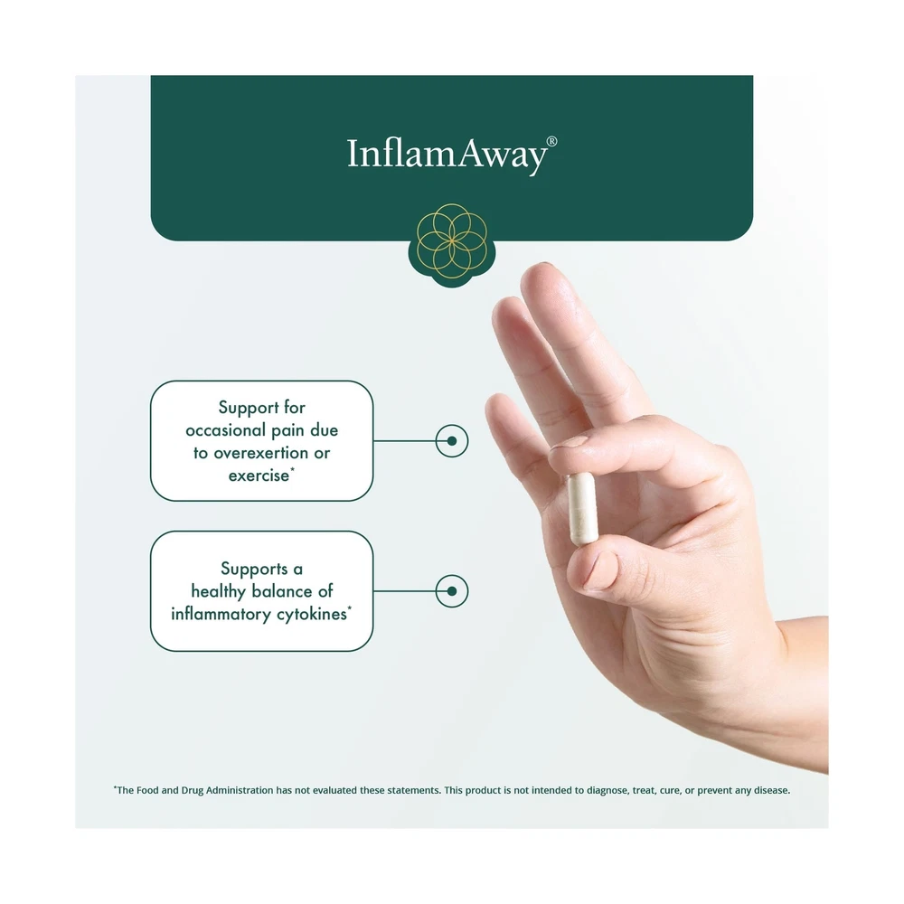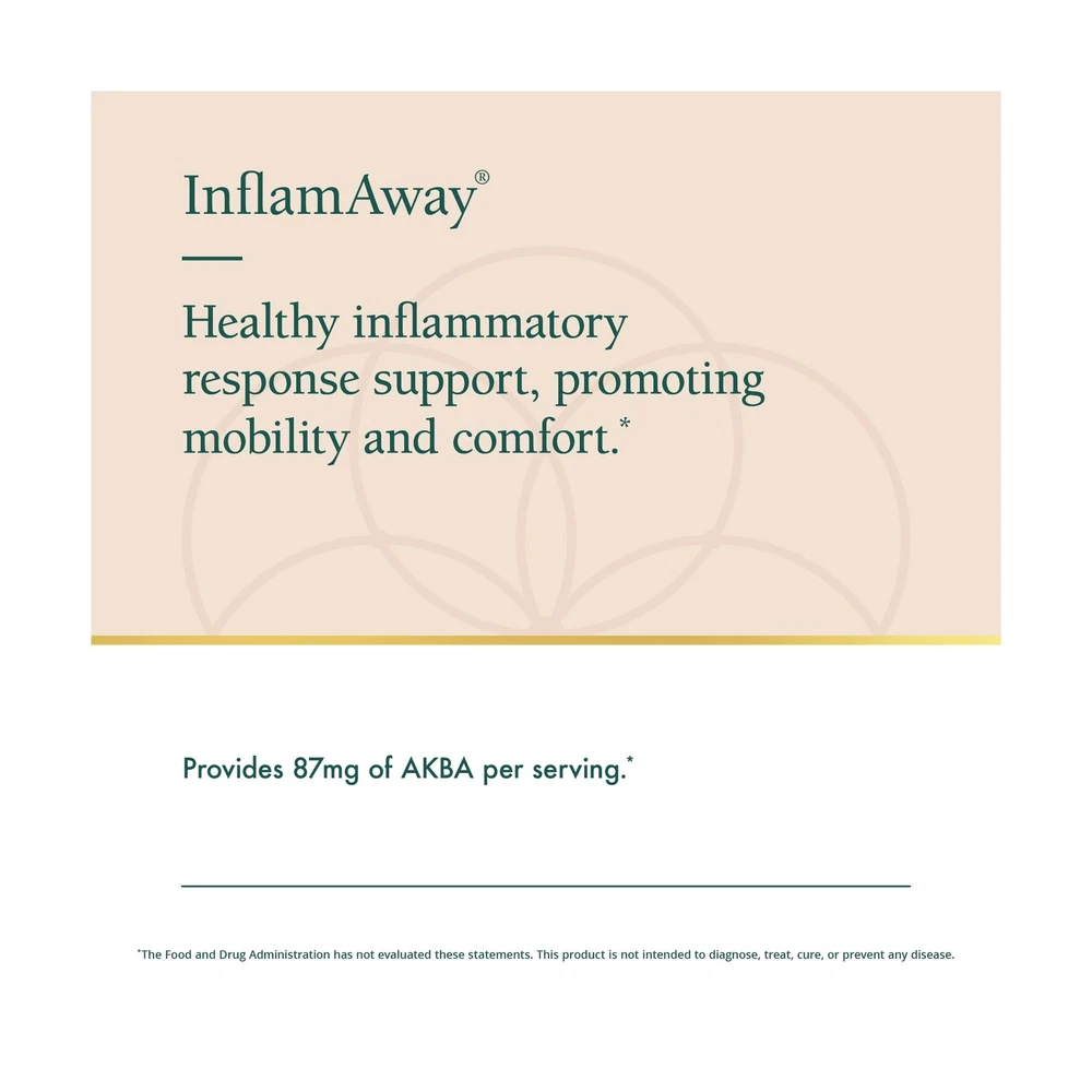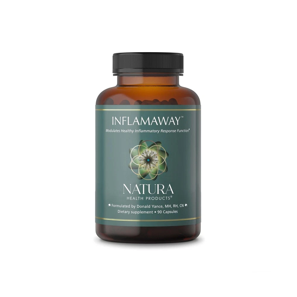 Natura Health Products InflamAway Supplement - Modulate a Healthy Inflammatory Response - Featuring Boswellia Serrata, Bromelain, Ginger, Black Pepper (BioPerine) and Chinese Skullcap (90 Capsules) Product Details Brand: Natura Health Products Primary Supplement Type: Boswellin Super, Feverfew, Magnolia Bark, Andrographis, Chinese Baikal Skullcap, Ginger, Bromelain and BioPerine See more Unit Count: 90.00 Count Item Form: Capsule Item Weight: 3.4 Ounces Item dimensions L x W x H: 2.38 x 2.38 x 4.25 inches Special Ingredients: Boswellin® Super Feverfew Magnolia Bark Andrographis Ginger, Bromelain and BioPerine® Product Benefits: InflamAway supports healthy activity of the inflammatory response function by encouraging normal and natural processes of cytokines and prostaglandins. See more Age Range (Description): Adult Package Information: Bottle Is Discontinued By Manufacturer : No Product Dimensions : 2.38 x 2.38 x 4.25 inches; 3.4 ounces Item model number : IFAC-110 Date First Available : May 29, 2011 Manufacturer : Natura Health Products InflamAway supports healthy activity of the inflammatory response function by encouraging normal enzymes, proteins and lipids.* Featuring Boswellin Super, a select extract of Frankincense (Boswellia serrata) which is standardized to 30% AKBA and 50% B-boswellic acid. AKBA is a natural compound that reduces LOX-5 and COX-2, as well as other activators.* Suggested Use: Take 2 capsules, two times daily, or as directed by your healthcare practitioner. DOES NOT CONTAIN: Wheat, gluten, milk, eggs, fish, crustacean shellfish, tree nuts, peanuts, sesame * Renowned among integrative and functional medicine practitioners, Natura Health Products is respected for its unwavering commitment to excellence in dietary supplements. Stringent third-party testing guarantees the highest quality and safety of each formula. Every capsule embodies our commitment to transparent quality and your peace of mind. Physicians Trust Natura Health Products - Serving the medical community since 2001, Natura Health Products is the trusted brand for professional, therapeutic grade supplements.