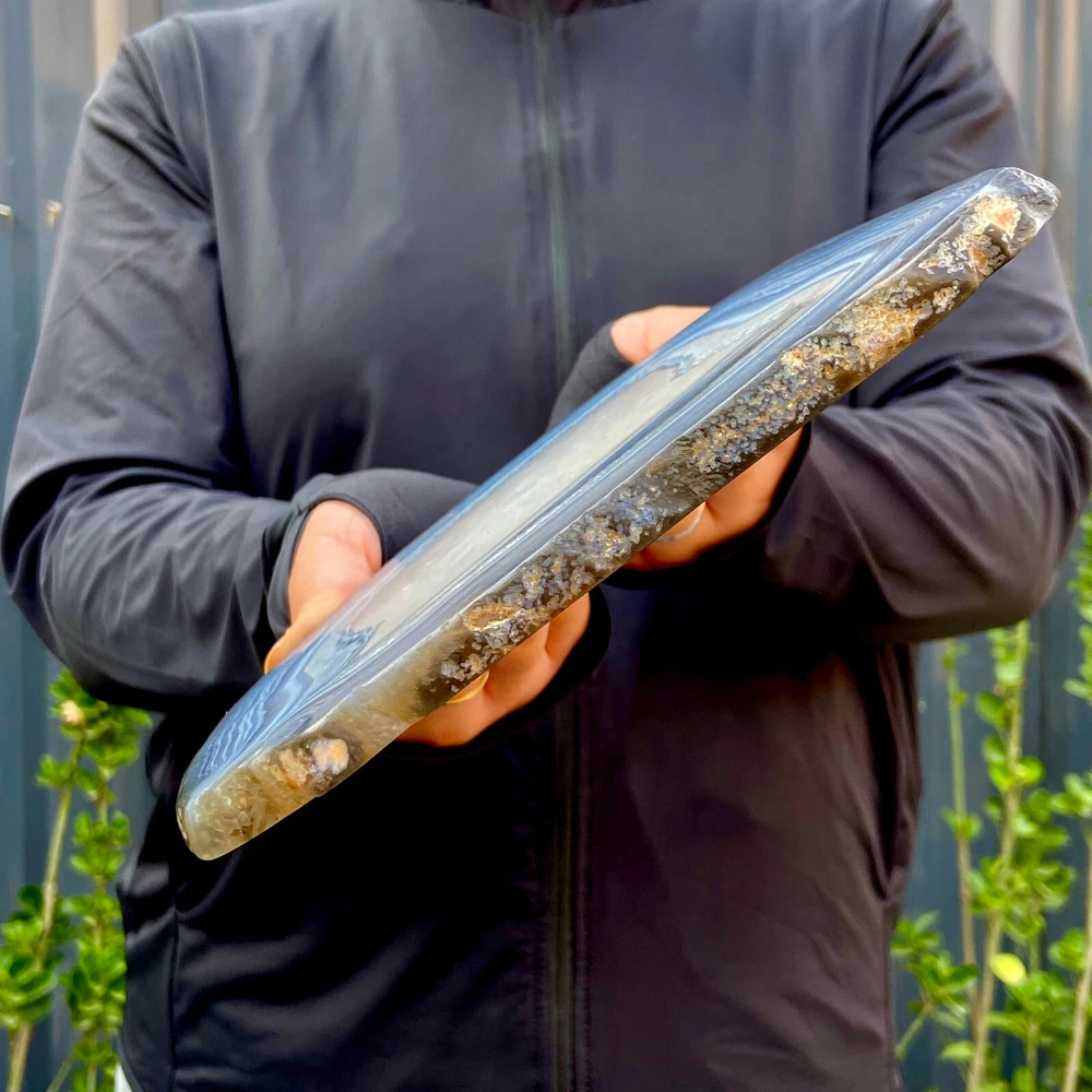 Natural 1.6LB Agate Geode Slab Quartz Crystal Mineral Specimen for Reiki