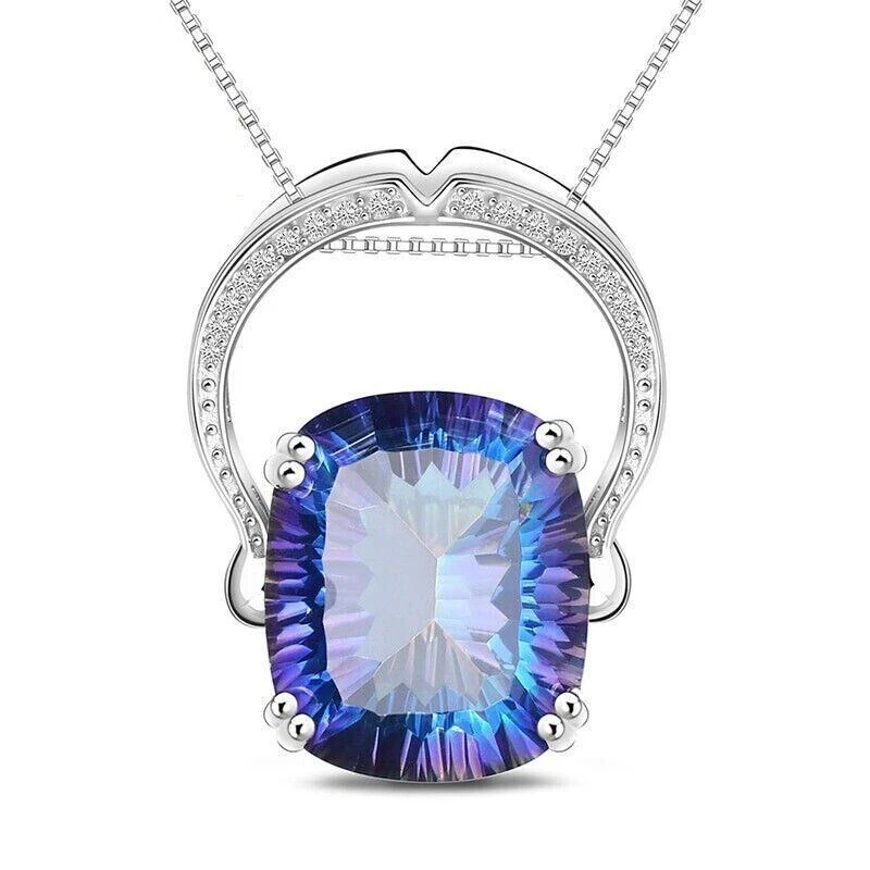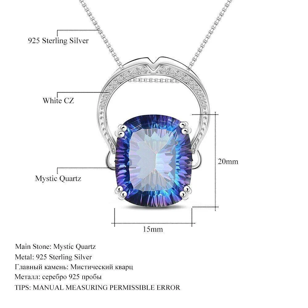 Style:Classic, PendantMetal:Sterling SilverTheme:Beauty, NatureMaterial:GemstonePendant Shape:RingType:NecklaceBase Metal:Fine Silver, 925 Parts Per 1000Main Stone:Mystic QuartzMain Stone Color:Multi-colorBrand:UnbrandedPendants Type:SolitaireMain Stone Creation:NaturalSecondary Stone:Cubic ZirconiaMain Stone Size:15*20mmLength:16 - 17.99Total Carat Weight:10.00 & OverCertificate Type:GtcMain Stone Treatment:HeatingMetal Purity:925 Parts Per 1000