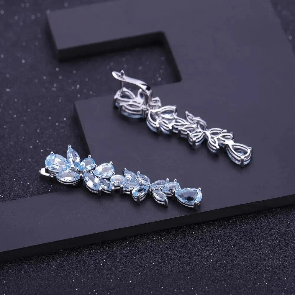 Natural 19.66Ct Sky Blue Topaz Gemstone 925 Sterling Silver Drop Earrings