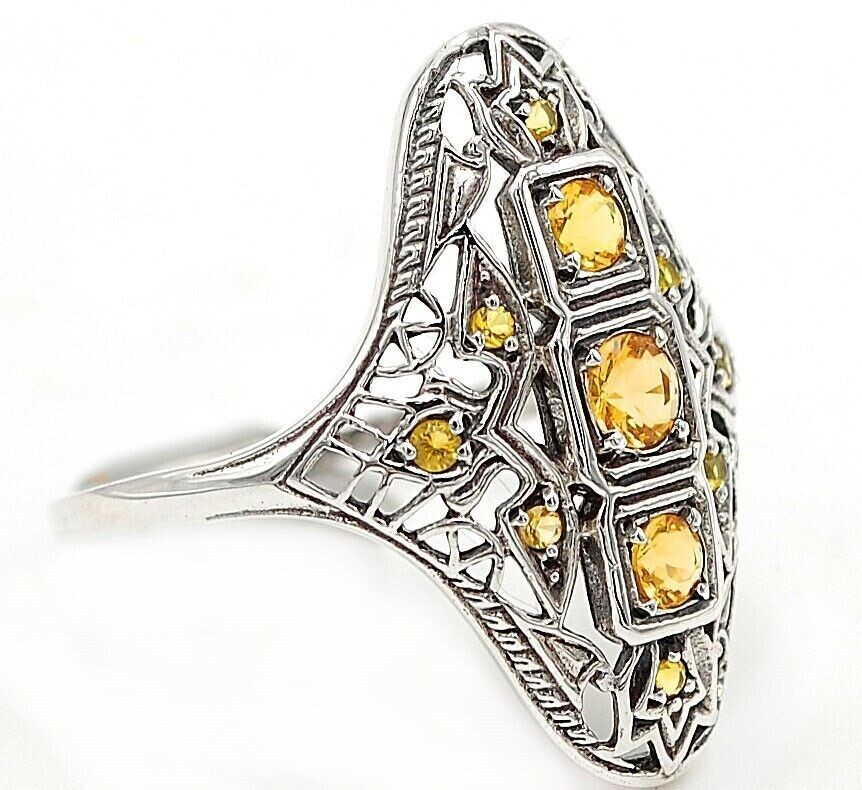 Natural 2CT Citrine Victorian Sterling Silver Ring Size 8 FB2-5 Jewelry