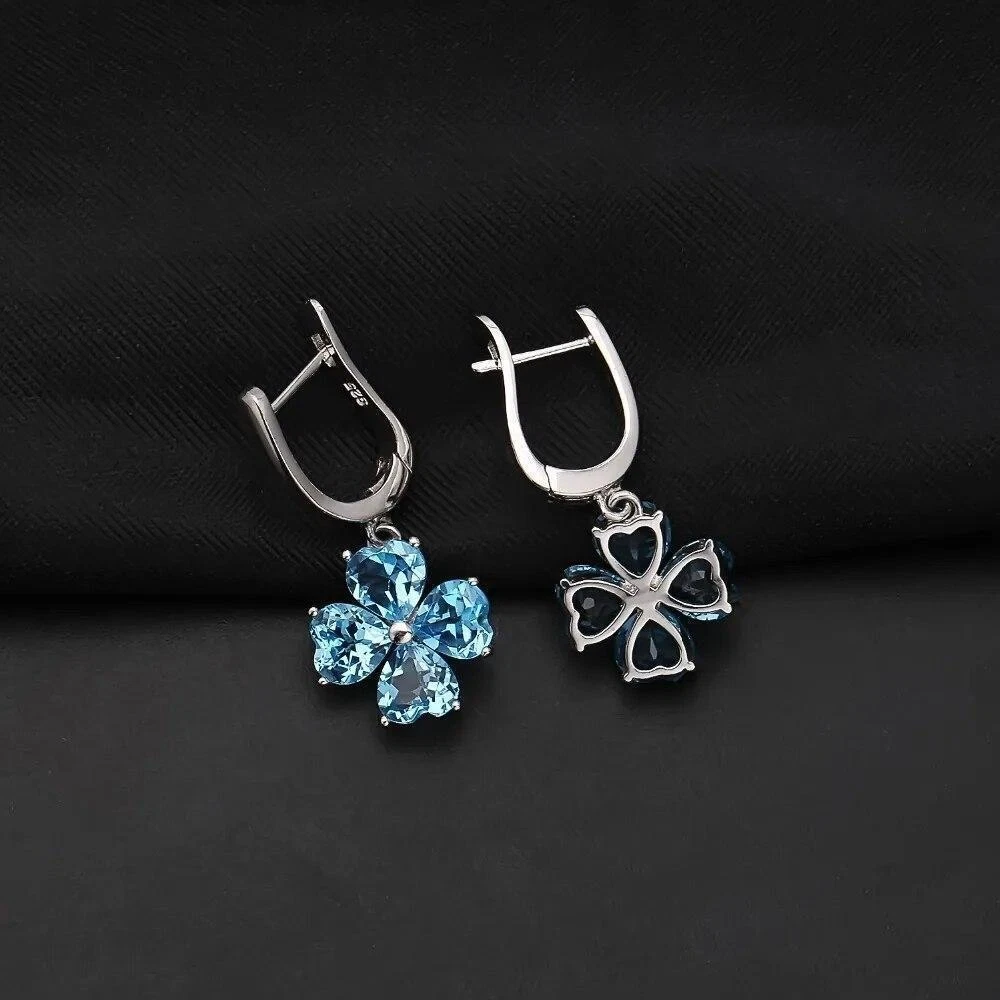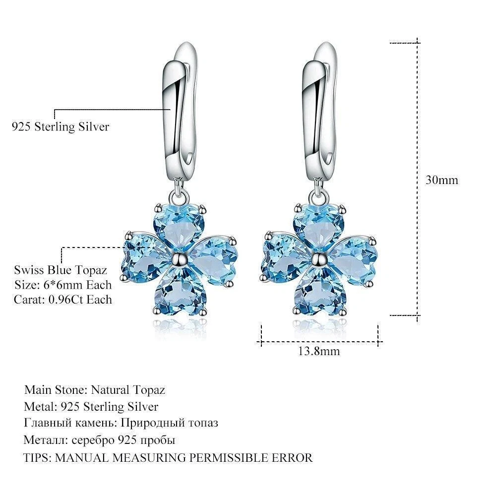 Item Weight:50gType:EarringsTheme:Flowers & PlantsMaterial:Natural GemstoneShape\pattern:PlantSecondary Stone:Swiss Blue TopazMetal:925 Sterling SilverGift For:Girlfriend, Wife, MomHandmade:YesMain Stone Carat:0.96ct EachBrand:UnbrandedMain Stone:Blue TopazMetal Purity:925 Parts Per 1000Main Stone Size:6*6mmEarring Type:Drop EarringsMain Stone Creation:NaturalCertificate Type:GTCStyle:Dangle/Drop, TrendyClosure:English LockMain Stone Color:BlueMain Stone Shape:HeartColor:SilverOccasion:Anniversary, Birthday, Engagement, Valentine's Day, WeddingShape:FlowerBase Metal:Fine Silver, 925 Parts Per 1000