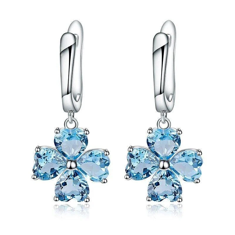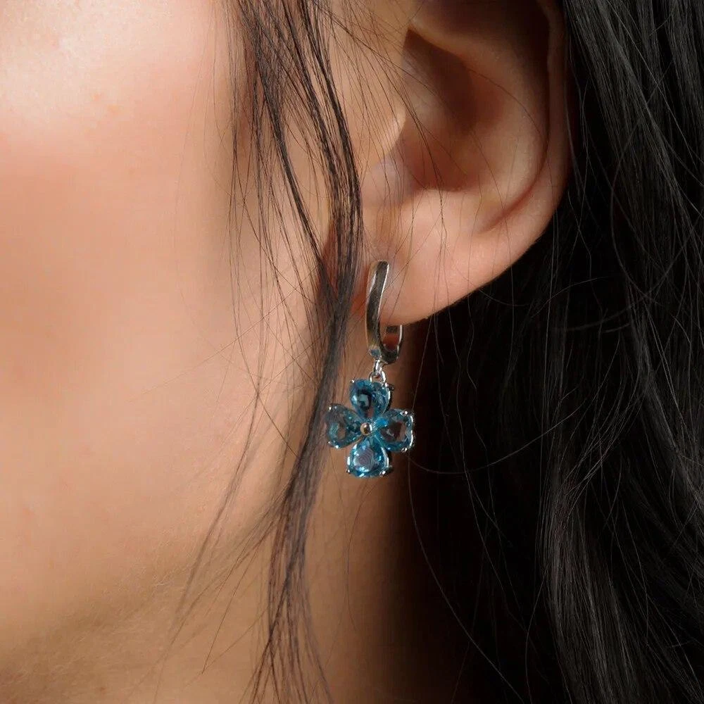 HomeNatural 7.66Ct Swiss Blue Topaz Drop Earrings 925 Sterling Silver Flower Design