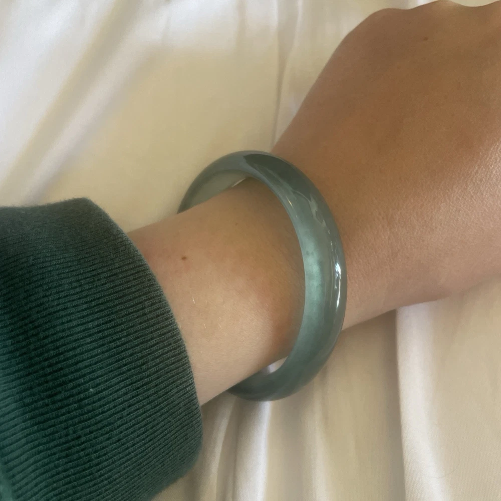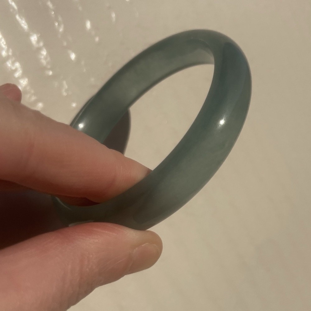 This Natural AAAABlueGreen Burmese JADE Bangle is a stunning piece of fine jewelry perfect for various occasions like Mother's Day, weddings, or birthdays. Featuring a round-shaped sea blue/green jadeite stone with a very good cut grade, this bangle is handmade and crafted from natural materials sourced from China. The traditional charm of this bracelet makes it a unique and elegant addition to any jewelry collection, showcasing the beauty of nature through its flawless design. More Info- often has visible natural formation marks—such as cotton-like inclusions, silk-like cotton, or tiny fissures—because it is a natural, non-homogenous crystal structure. These markings are evidence of its organic growth, representing mineral inclusions (like chromium or iron oxide) or internal stress cracks that did not fully