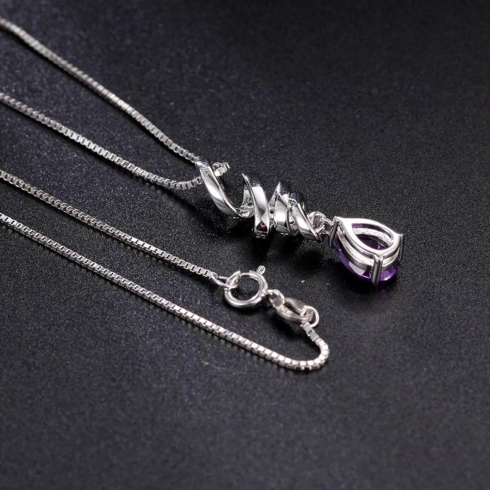 HomeNatural Amethyst Gemstone Necklace 925 Sterling Silver Ribbon Swirl Pendant
