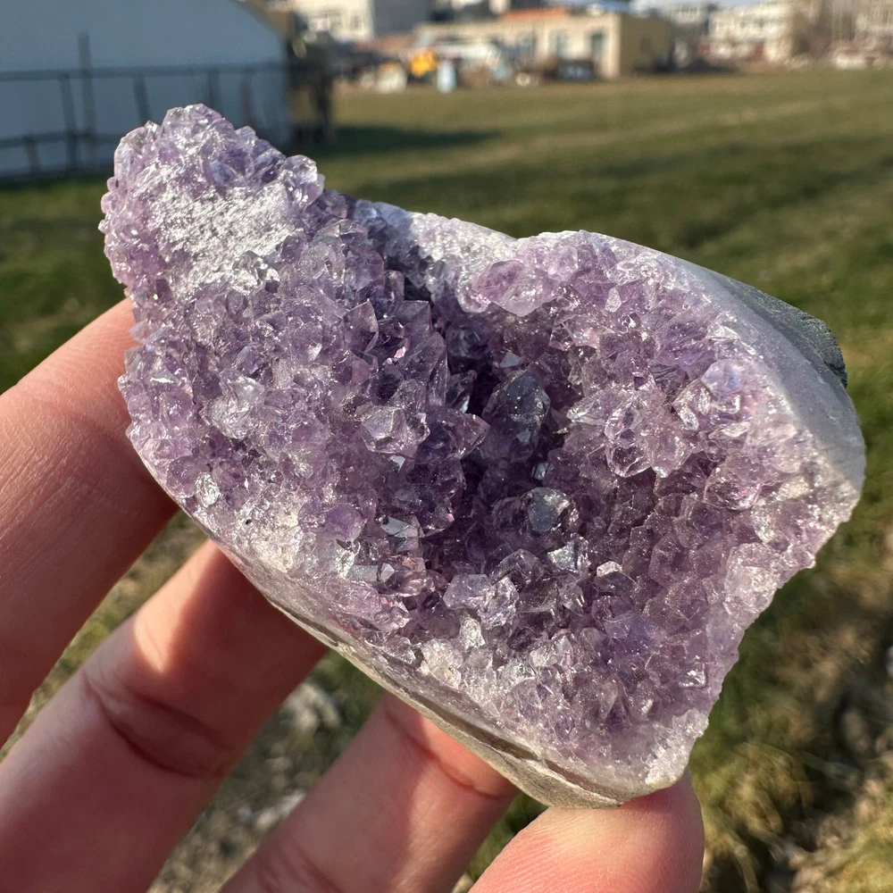 Natural Amethyst Geode Quartz Cluster Crystal Specimen Cut Base
