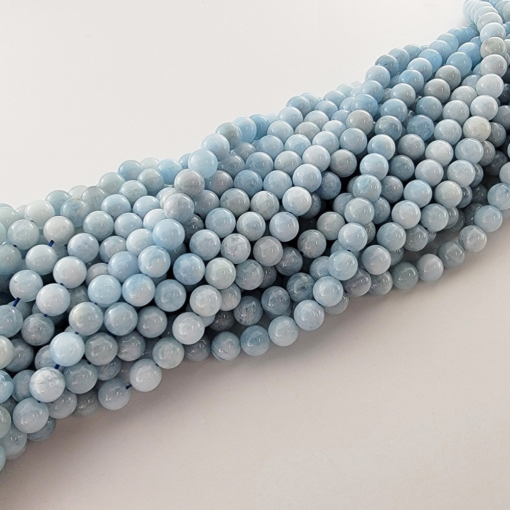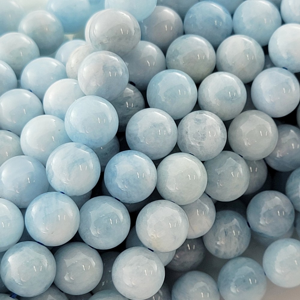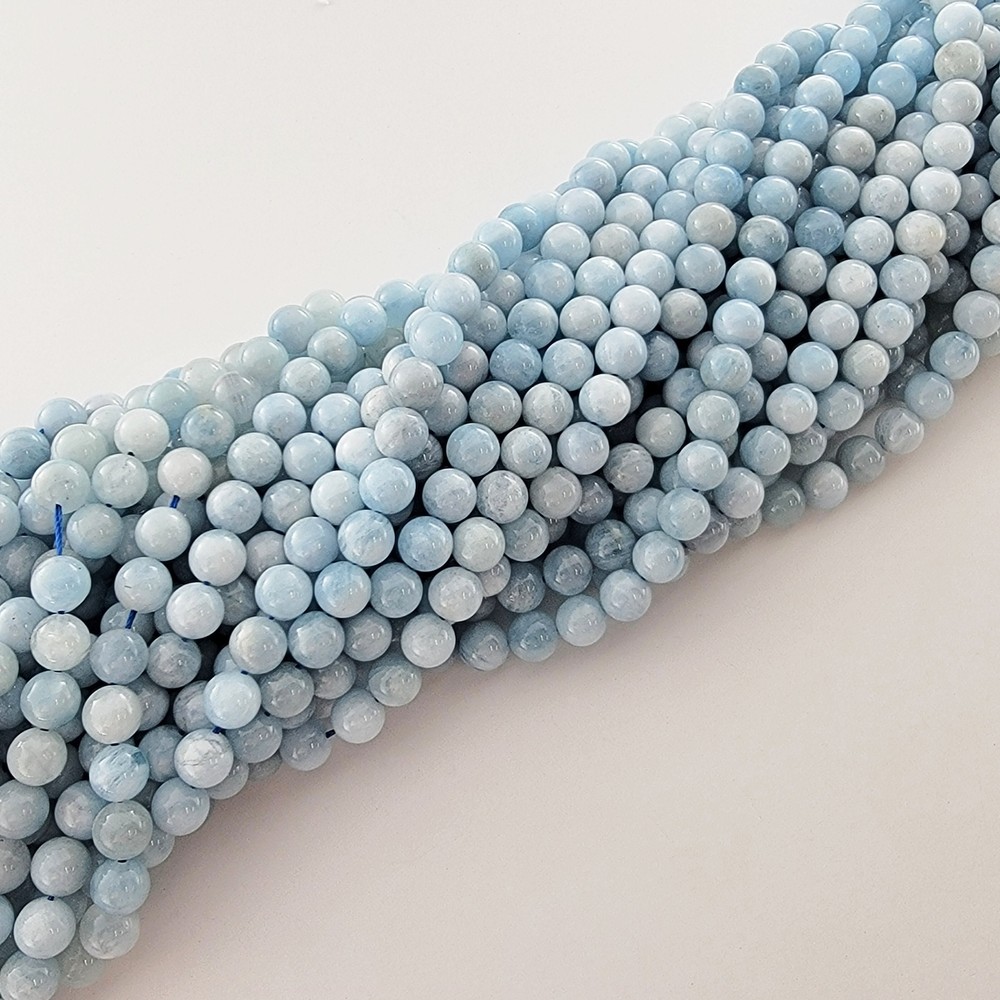 Genuine Aquamarine beryl natural stone beads, 6mm/8mm/10mm. MOHS hardness: 7.5 Stone of Courage. The tone of aquamarine can vary dramatically from stone to stone. Some say it is a stone that keeps people happy and honest in marriage. Said to bring intellect, knowledge, the enhancement of ideas, and clarity of the mind. My goal is to consistently provide the best beads available. You'll always receive excellent quality beads from me and I will never lie to you about their grade. Our photos are taken in-house so you'll always see what you're getting. Details: - Strand length: approximately 15" - Price is per strand. - Bead sizes are approximate and may have a variation of +/- 0.5mm. - Drill hole sizes on MOST beads - 4mm beads: about 0.5mm; 6-8mm beads: about 0.7-0.8mm; 10-12mm beads: about 0.8-1.0mm - Drill hole sizes are approximate and may have a variation of +/- 0.2mm. - All natural gemstones vary in color and pattern. We take our photos in-house so you can see the actual product we carry, but there is some variance between batches. - We generally ship Mon-Fri (except holidays) and try to ship same-day when your order is received before 2pm CST. *Number of beads per 15" strand* Our beads are sold by the strand, not the number of beads. Please use the following chart for reference only for smooth, round beads. 4mm dia - about 90pcs/strand 6mm dia - about 60pcs/strand 8mm dia - about 46pcs/strand 10mm dia - about 39pcs/strand 12mm dia - about 33pcs/strand Return Policy Satisfaction guaranteed with our 14-day return policy. Buyer is responsible for all shipping costs. Returned product must be in salable condition and all beads must be on the original strand.