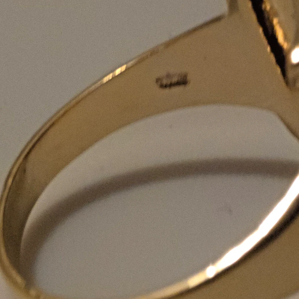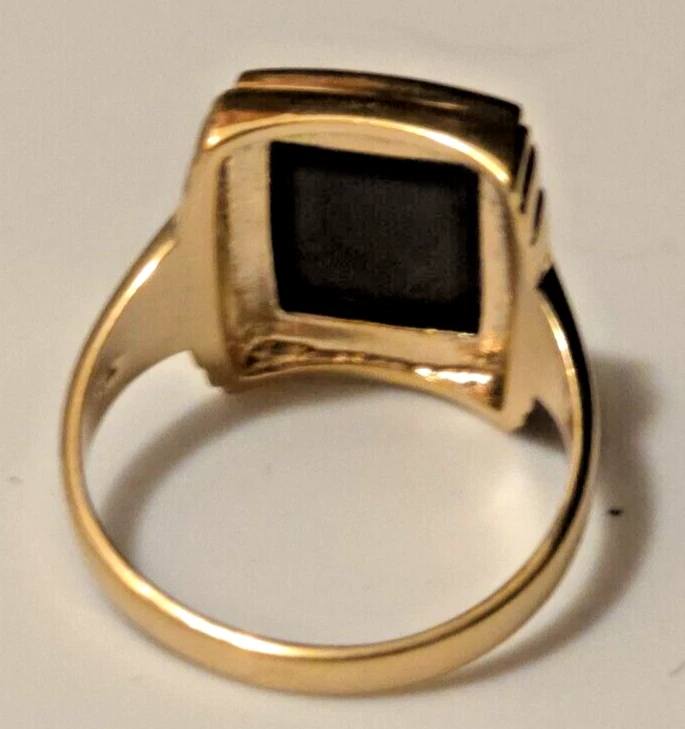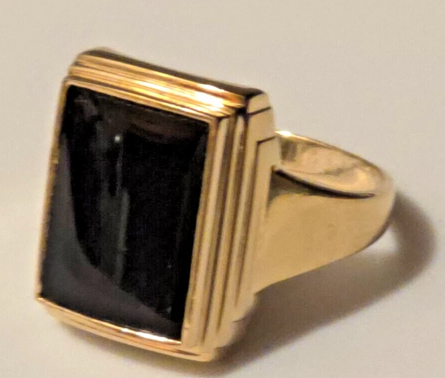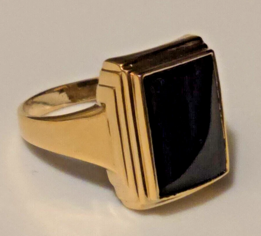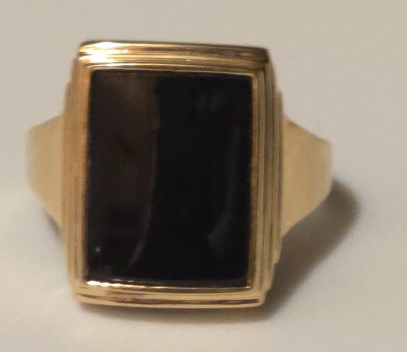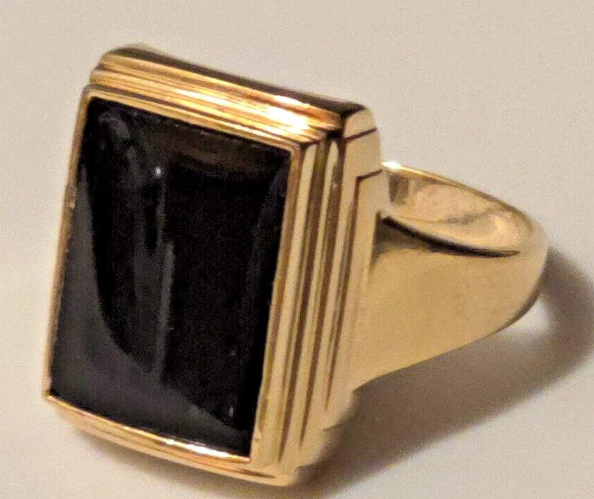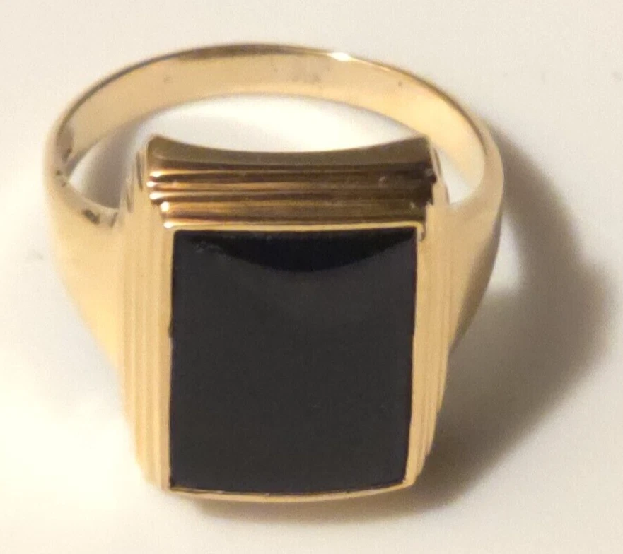 Elevate your style with this stunning men's cocktail ring from LVJ. Crafted with natural black onyx and gold-plated sterling silver, this ring features a bezel setting style and a baguette-shaped main stone. The ring is a size 12 and has a band width of 3mm. The ring is perfect for those who appreciate the beauty of nature, art, and western culture. Its vintage style and biker-inspired theme make it a great addition to any collection. The ring is a unique piece that will make a statement and is perfect for any occasion.