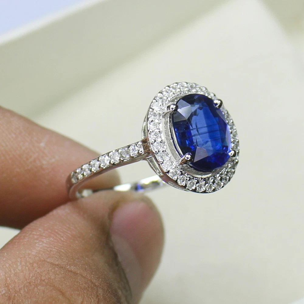 Natural Blue Kyanite Ring in 925 Sterling Silver – All Sizes Available