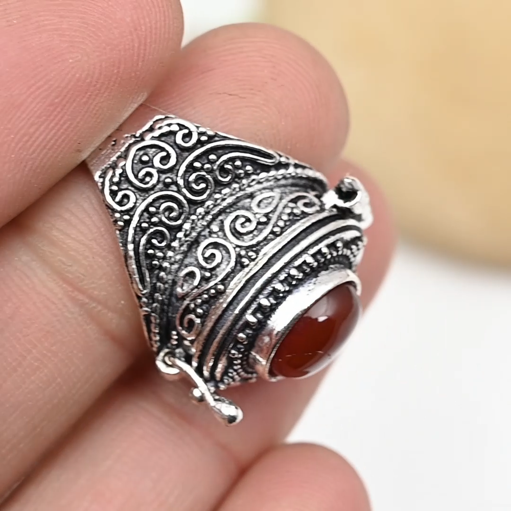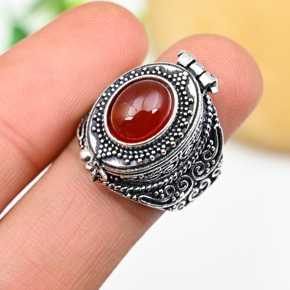 HomeNatural Carnelian Gemstone 925 Sterling Silver Adjustable Pill Box Ring