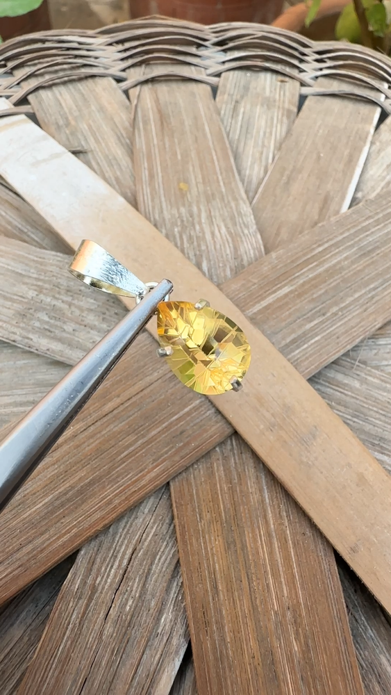Natural Certified 8.65 Ct Yellow Citrine Loose Gemstone 925 Silver Pendant