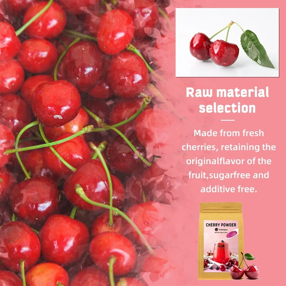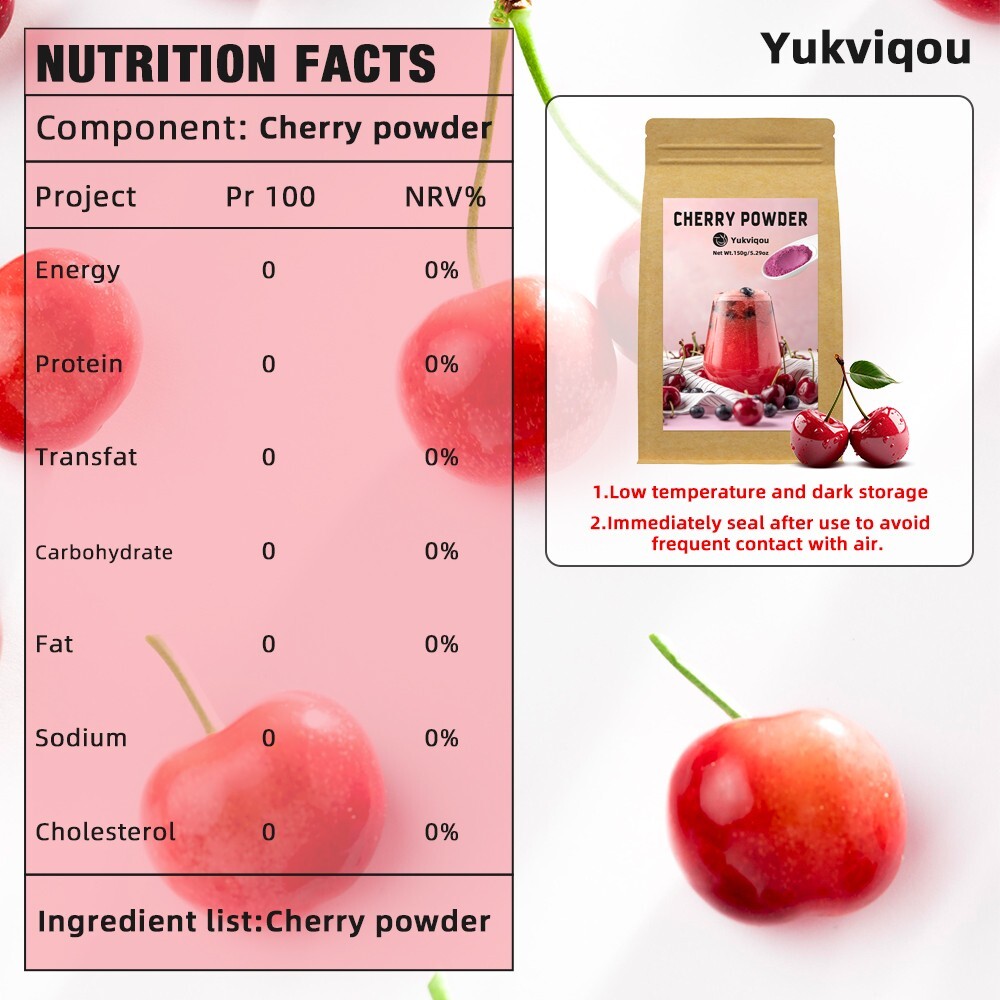 100% Pure Cherry Nutrition Locked Crafted from whole, additive - free cherries, this powder preserves anthocyanins, melatonin, and vitamin C — delivering authentic plant - based nourishment. 150g Large - Size Value Pack Each pouch contains 150g (5.29oz) of fine cherry powder, offering ample servings for daily smoothies, juices, or baking — ideal for long - term wellness routines. Antioxidant & Sleep Cycle Support Rich in natural anthocyanins (free - radical fighters) and melatonin, it supports cellular health and balanced sleep patterns for restorative rest. Instant - Mix Texture for Easy Use The ultra - fine, soluble formula blends seamlessly into water, shakes, or meals. Enjoy cherry benefits at home, gym, or on the go with zero fuss. Post - Workout & Immune Wellness Boost Cherry’s anti - inflammatory and vitamin - C - rich profile aids muscle recovery after exercise while enhancing daily immune defense naturally.