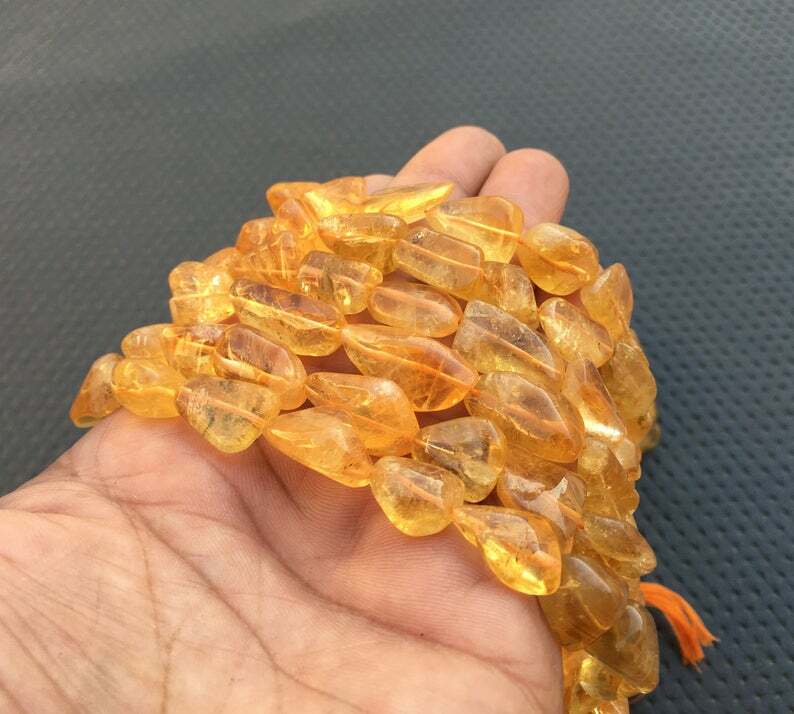 Natural Citrine Gemstone Nugget Shape Smooth Beads Size 10x13-13x18 MM Citrine Gemstone Making Jewelry 13"Long Smooth Citrine Nuggets Beads Gemstone :- Natural Citrine Shape :- Nugget Shape Size:- (Approx)- 10x13-13x18 MM Stone Cut:- Smooth Length : 13" inch Long Quantity : Buyers Will get one Strand WELCOME artNGEM We are Manufacturer and exporter of semi precious and precious stone , we have large variety of stone , cut and polished by excellent artisan and work force. we are in this trade from last 25 years. WE KEEP MORE THAN LISTED QUALITY IN READY STOCK....WE CAN SHIP IN SHORT PERIOD OF TIME... OR YOU CAN GIVE ME A ADVANCE ORDER ALSO...FOR WHATEVER SHAPE OR SIZE THAT YOU WANT IN ANY TYPE OF STONE... Measurements and weights are close approximations..... WE ARE HERE ONLY FOR OUR CUSTOMER...WE WILL BE GLAD TO ASSIST YOU... -x-x-x-x-x-x-x-x-x-x-x-x-x-x-