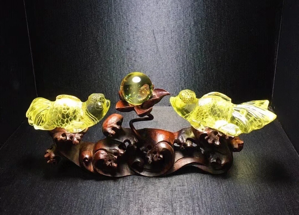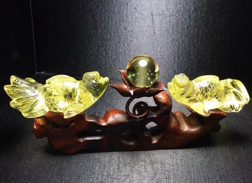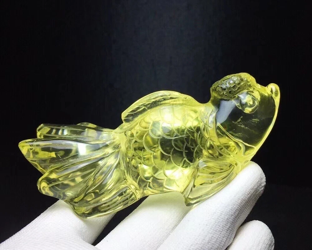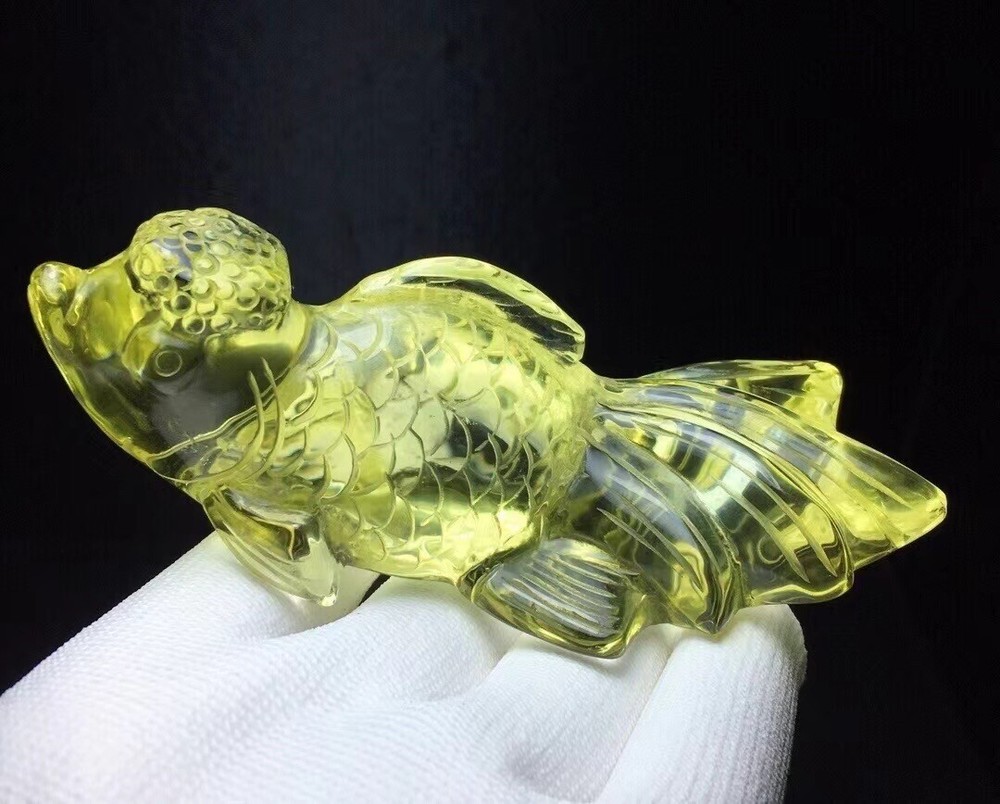 Natural Citrine Quartz Goldfish Skull Hand-Carved Crystal Healing Ball Pair