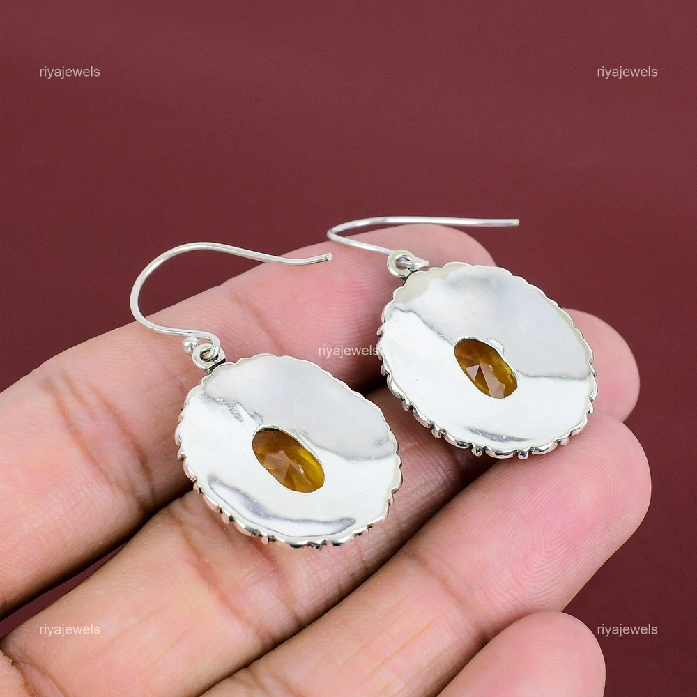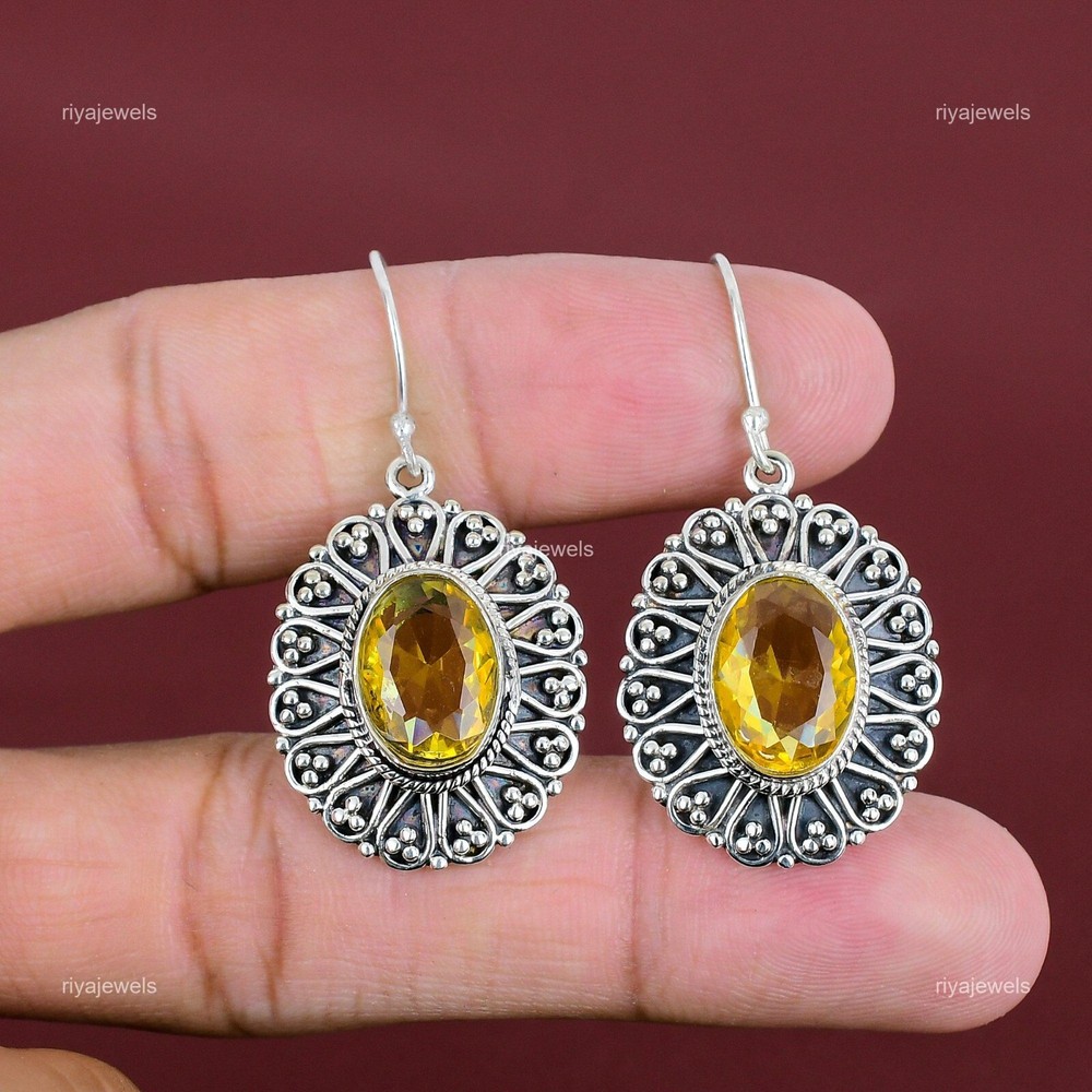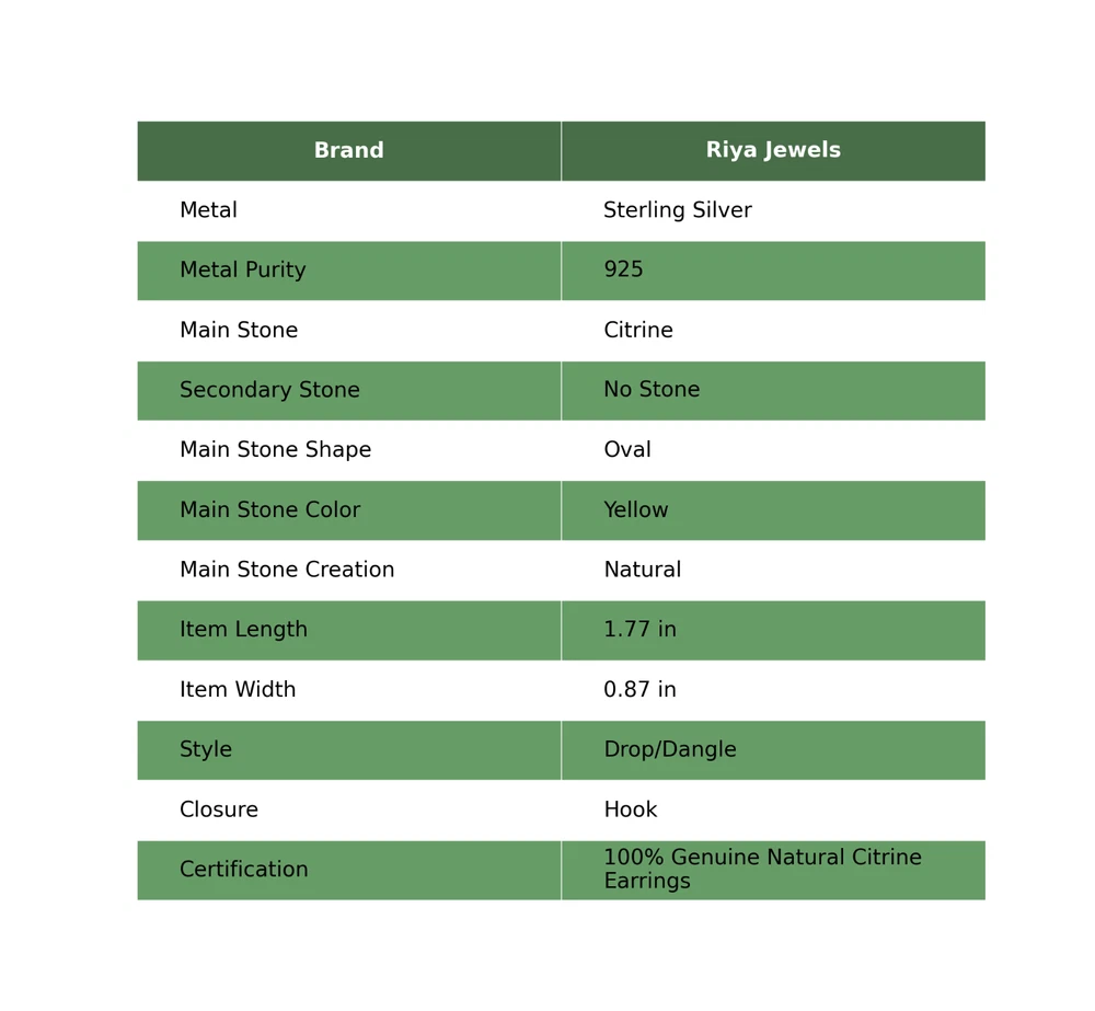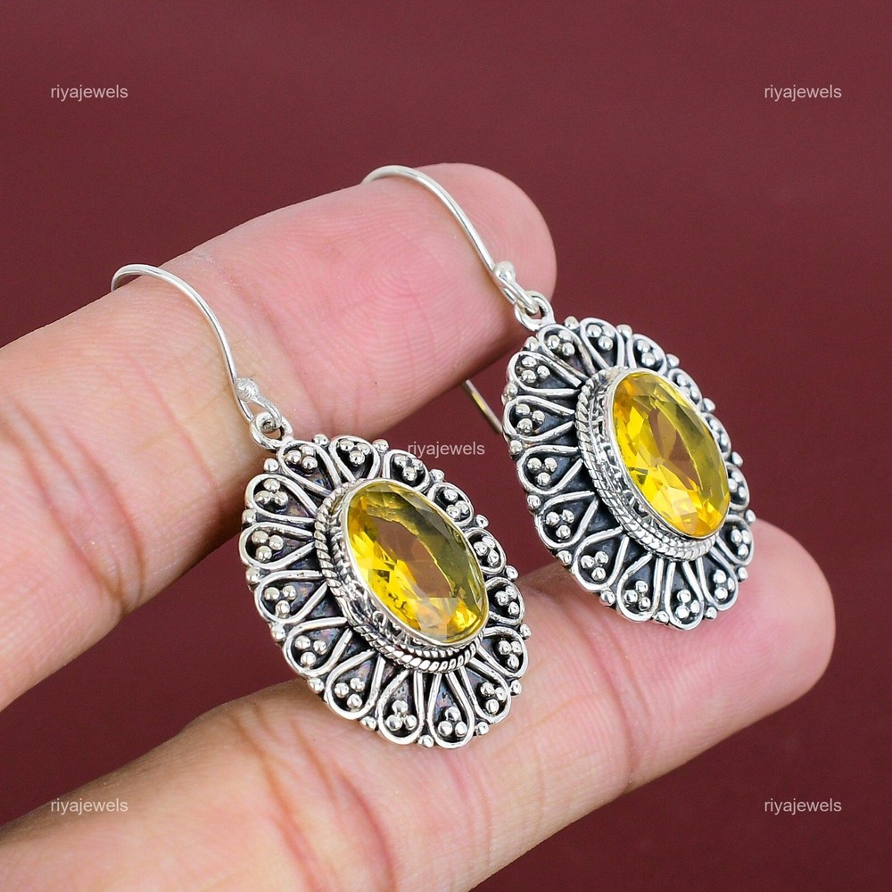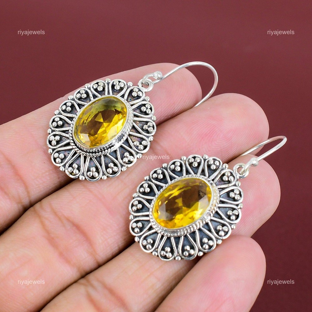 Note : Due to the natural formation of this gemstone. Slight variation in design and color are to be expected. Welcome to Riyajewels Natural Citrine Gemstone 925 Sterling Silver Drop/Dangle Earrings For Women Handmade Earrings, Sterling Silver Earrings, Citrine Earrings, Handcrafted Earrings SKU : PE-1632 Gemstone : Citrine Stone Shape : Oval Metal Purity : 925 Sterling Silver Length : 45 Millimetres Width : 22 Millimetres Silver Jewelry is a popular choice for many people due to its unique properties and numerous benefits. Here are some of the key properties and benefits of wearing silver jewelry: Properties: Durability: Silver is a durable metal that can withstand regular wear and tear. Malleability: Silver is highly malleable, which means it can be easily shaped and molded into various designs. Conductivity: Silver is an excellent conductor of heat and electricity. Anti-bacterial: Silver has natural anti-bacterial properties, which can help prevent the growth of harmful bacteria. Benefits: Aesthetic appeal: Silver jewelry is known for its beauty and versatility, and can be worn with a variety of outfits and styles. Hypoallergenic: Silver is generally hypoallergenic, which means it is unlikely to cause an allergic reaction in most people. Healing properties: Some people believe that wearing silver jewelry can help with various physical and emotional conditions, such as arthritis, anxiety, and depression. Spiritual significance: Silver has been used in various cultures for its spiritual and symbolic significance, and wearing silver jewelry can help to connect with these traditions. Investment value: Silver is a precious metal that retains its value over time, and investing in silver jewelry can be a smart financial decision. Overall, silver jewelry offers a unique combination of beauty, durability, and benefits, making it a popular choice for people around the world. For Mother's Day Gift For Father's Day Gift For Promise For Valentine' Day For Halloween Party For Christmas Day Gift For New Year Party For Mom For Her If you can't find the information you need or need some advice for your design? Feel free to contact us. We are fast to reply :) All our work is made by hand with Love and Care in our workshop Thank you so much for visiting and hope you enjoy shopping with us Riyajewels is dedicated to providing customers with high-quality sterling silver jewelry. As a manufacturer of handmade jewelry, we offer an extensive range of silver gemstone jewelry that demonstrates our exceptional craftsmanship. We are skilled in adorning gemstones to complement any style, and we give you the freedom to design your own jewelry collection with dazzling, natural, and genuine gemstones. Our talented craftsmen carefully handcraft each jewelry piece, ensuring that it is unique and made with authentic gemstones.