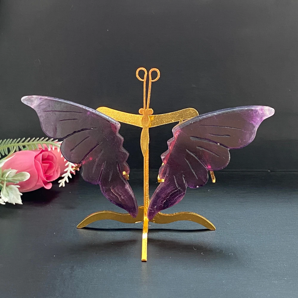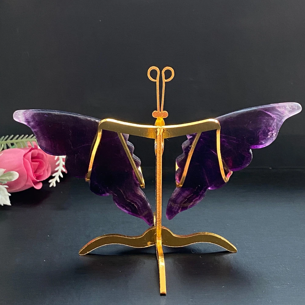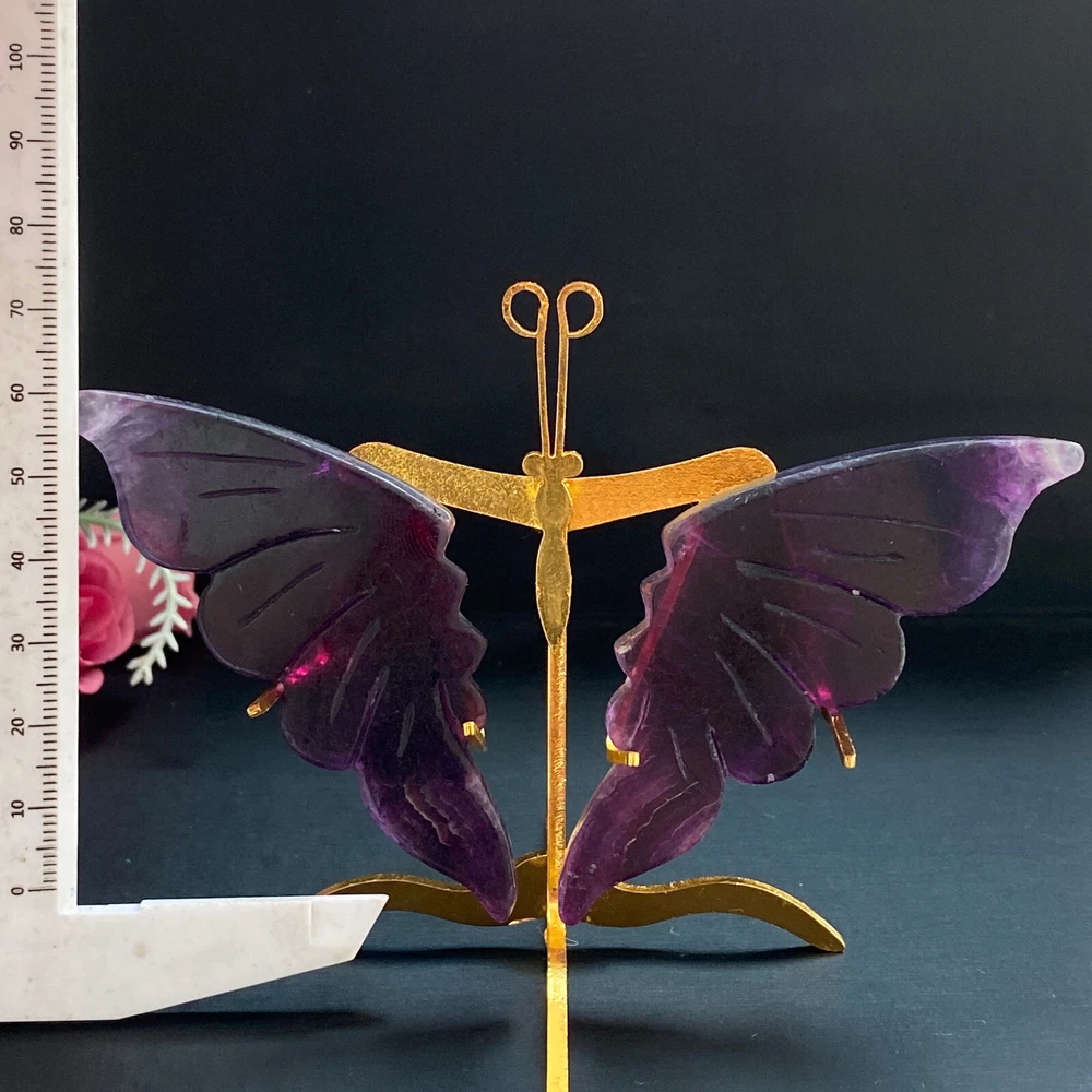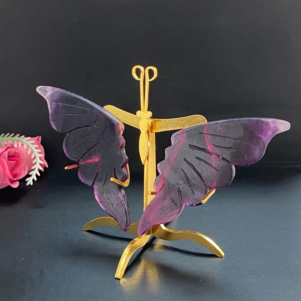 Natural Crystal Rainbow Fluorite Butterfly Wings Healing Statue Decor + Stand