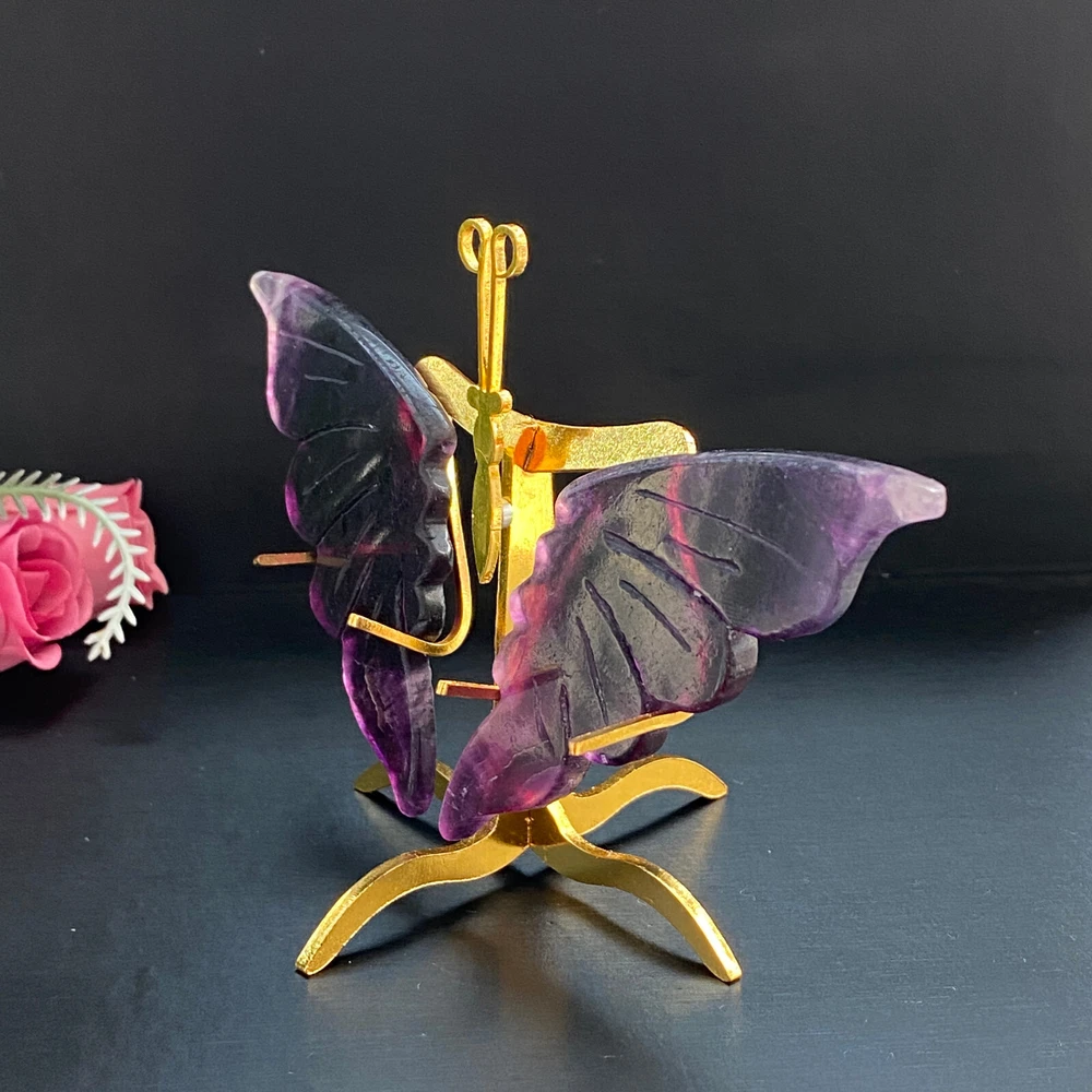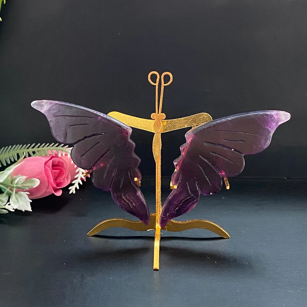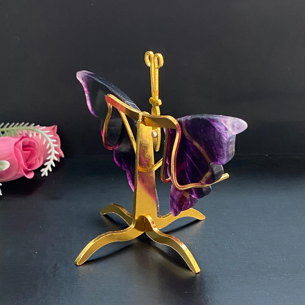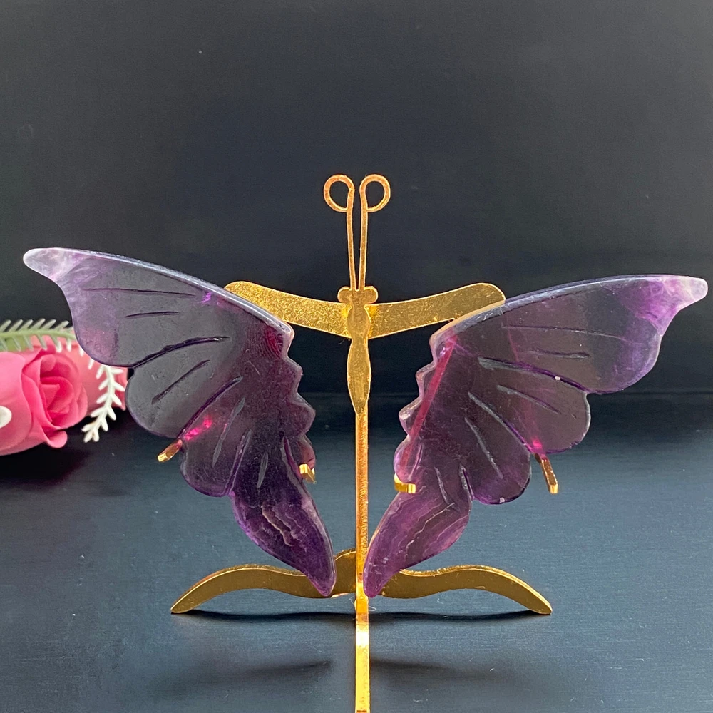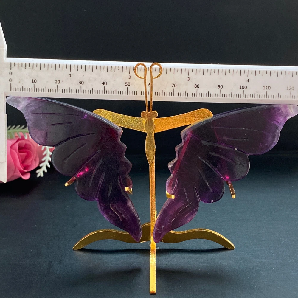 Natural Crystal Rainbow Fluorite Butterfly Wings Healing Statue Decor + Stand