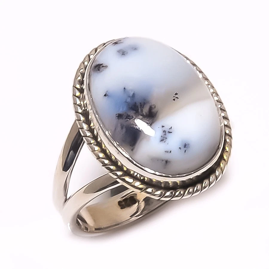 Material: Stone, Gemstone Number of Diamonds: 0 Style: Band, Charm Brand: Unbranded Gemstone Clarity Grade: Eye Clean Main Stone Size: 11X16mm Customized: No Diamond Clarity Grade: Not Applicable Occasion: Anniversary, Birthday, Christmas, Engagement, Valentine's Day, Wedding, Mother's Day Main Stone: Dendrite Opal Diamond Color Grade: Not Applicable Secondary Stone: No Stone Era: Undated Stone-Size: 11X16mm Ring Size: 8 Country/Region of Manufacture: India Total Carat Weight: 50 Carat Above Metal Purity: 925 Main Stone Color: White Weight: 4.6 gm Base Metal: Silver Type: Ring Number of Gemstones: 1 Theme: Beauty, Beach, Family & Friends, Love Setting Style: Channel-Set Main Stone Shape: Same As Picture Collection: Brand New Certification: Yes Signed: Yes Band Width: 2 mm Main Stone Treatment: Not Enhanced Cut Grade: Fair Main Stone Creation: Natural Colored Diamond Intensity: Not Applicable UPC: does not apply Shape: Same As Picture Metal: Sterling Silver Handmade: Yes Color: White Country of Origin: India Features: Adjustable, Engraved, Stackable ProductName: Ring gtin13: does not apply Sizable: No Wholesale: Yes