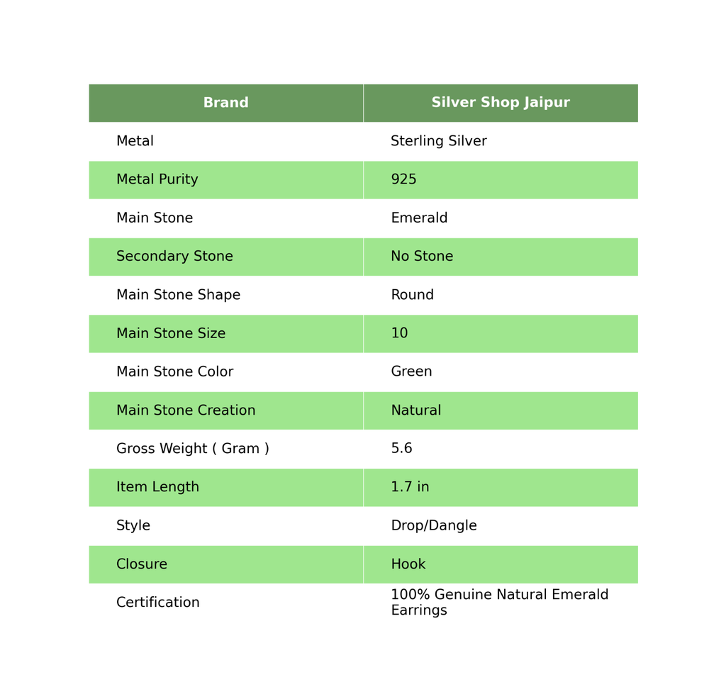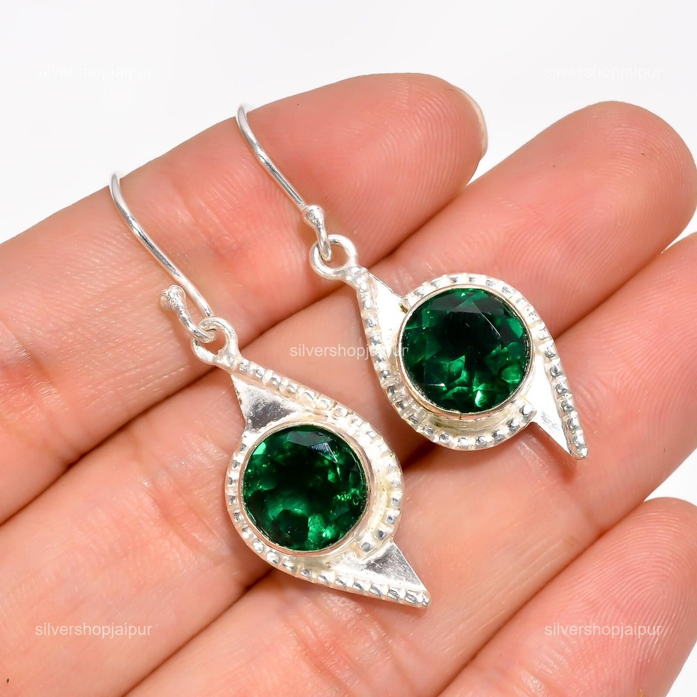Trendy and appealing, this 925 Sterling Silver Earrings from Silver Shop Jaipur studded with Emerald is a must-have in your accessory collection. This designer Earrings is featuring an eye-catching finish, which is worth investing in. Welcome to SILVERSHOPJAIPUR Mothers day Sale Natural Emerald Dangle Drop Engagement Boho Earrings 925 Silver Description :- SKU:- SSSE-163 Metal:- Sterling Silver Metal Purity:- 925 Gemstone:- Emerald Gemstone Color:- Green Gemstone Shape :- Round Gemstone Creation :- Natural Stone Setting :- Bezel Earring Length:- 1.7 Inches ♥ CUSTOMIZATION ♥ Customize your ring with your choice of birthstone or gemstone, and choose from heart or star designs, with or without additional embellishments. ♥ SAFE AND HYPOALLERGENIC ♥ Our sterling silver rings are nickel-free, lead-free, and hypoallergenic, ensuring they are safe and gentle on your skin. Handcrafted by SILVERSHOPJAIPUR. ♥ PERFECT GIFT ♥ These handmade, beautifully textured or hammered wide statement spinner rings are perfect for any occasion. They make thoughtful gifts for birthdays, weddings, anniversaries, or engagements. Your mom will adore this ring on Mother’s Day. ♥ QUALITY STERLING SILVER ♥ Made from solid 925 sterling silver with a 925 stamp, these rings are durable and perfect for everyday wear. ♥ VERSATILE STYLE ♥ These rings complement any outfit, making them a versatile addition to your jewelry collection. Ideal for any occasion and perfect as holiday stocking stuffers. ♥ EYE-CATCHING DESIGN ♥ Designed to ensure you stand out effortlessly, these rings combine sleek, modern, classic, and elegant styles. Each ring is carefully packed in a beautiful jewelry box, making it a wonderful gift for your mother, girlfriend, fiancée, wife, valentine, family, or friends for Mother’s Day, weddings, anniversaries, engagements, or Valentine’s Day. --------------------------------Image Policy----------------------------- All photos are taken in natural light. The product shown in the pictures is the actual product you will receive. --------------------------------Delivery Policy-------------------------- Standard shipping typically takes 15-25 days, depending on your location. Expedited shipping is available for an additional fee. --------------------------------Product Policy--------------------------- You will receive the actual product shown in the pictures. All products are handmade. ---------------------------------Order Policy------------------------------ We accept orders worldwide, including custom and bulk orders. If you have any questions about our products, please feel free to contact us. After receiving your product, please leave a review. ⋆⋆✦✧✦⋆⋆⋆⋆✦✧✦⋆⋆⋆⋆✦✧✦⋆⋆⋆⋆✦✧✦⋆⋆⋆⋆✦✧✦⋆⋆⋆⋆✦✧✦⋆⋆⋆⋆✦✧✦⋆⋆ "Explore a realm of exquisite and enchanting handcrafted gemstone jewelry at our boutique." ♥ Thank you for visiting us ♥