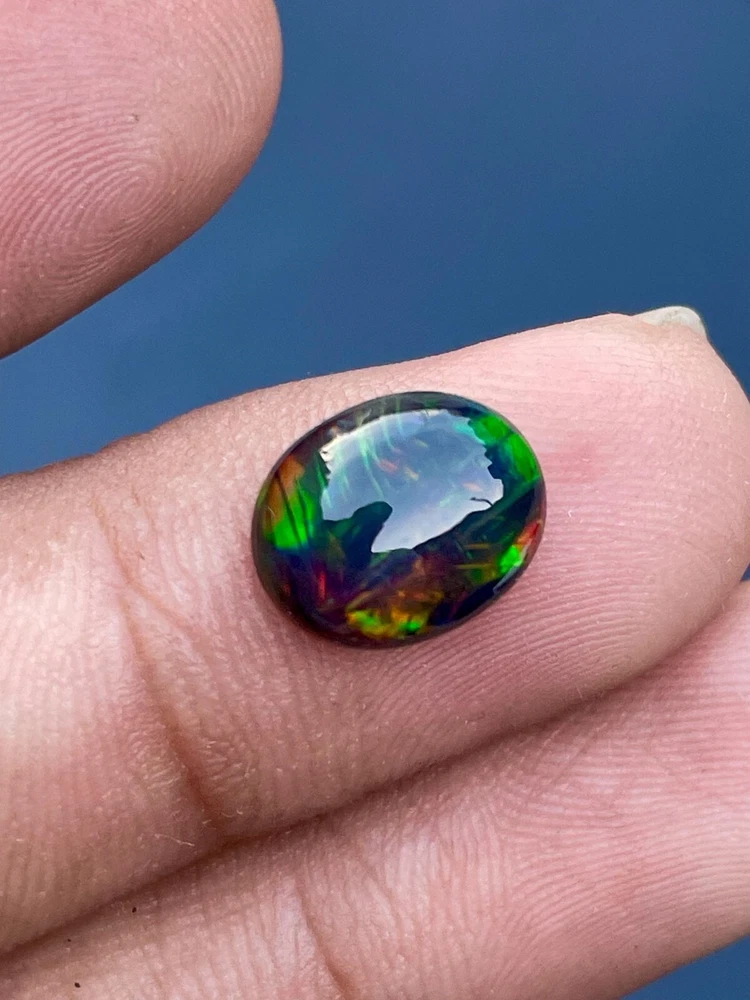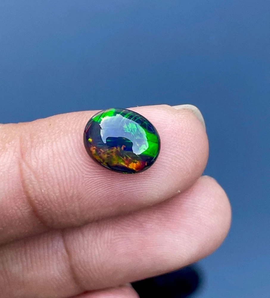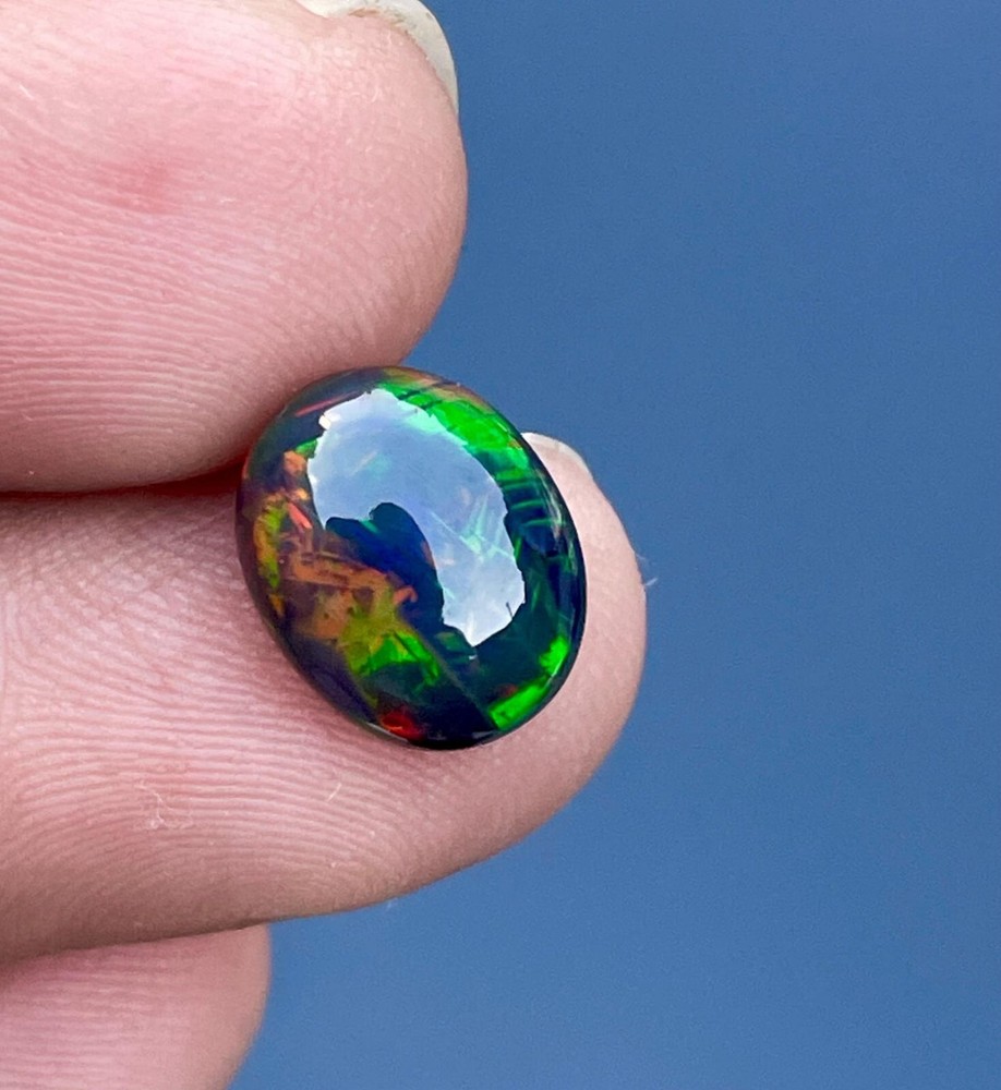 Natural Ethiopian Multi Fire Black Opal Cabochon 3.5 Ct Loose Gemstone Certified