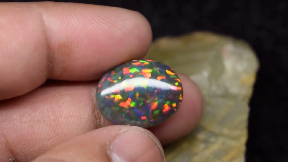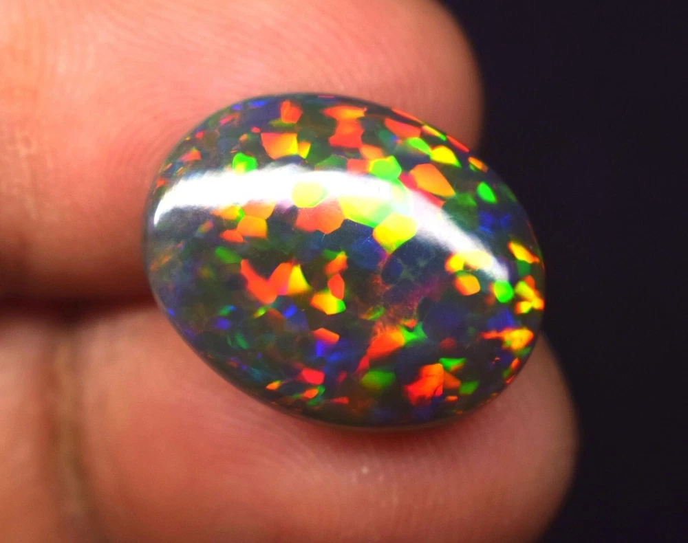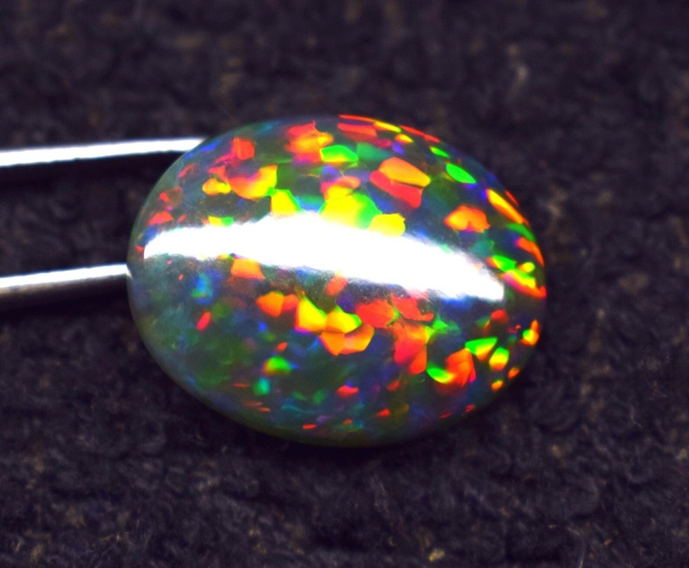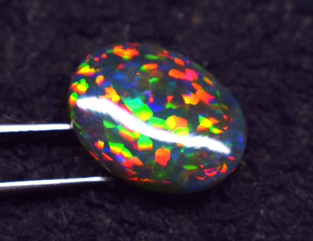 Natural Ethiopian Multi Fire Black Opal Cabochon 4 Ct Loose Gemstone