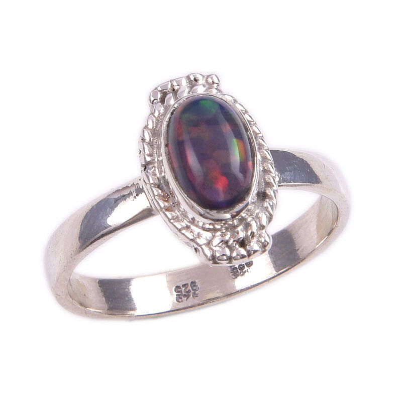 Natural Ethiopian Opal Gemstone Sterling Silver Size 7.5 Gift Ring