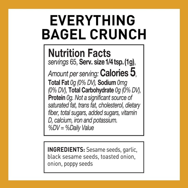 Cozy Electric Heating Blanket Faux Fur Soft Warm Throw Home Office Use 53.47 USD 57.49 USD Free shipping 7% off Soft Heated Blanket Twin Sherpa Electric Auto Off 5 Heat Settings Comfortable US 44.99 USD Free shipping Bulk 2-Ply Toilet Paper 96 Rolls 400 Sheets Soft Biodegradable Commercial Use 52.5 USD Free shipping Electric Heated Blanket Soft Warm Auto-Off 5 Heat Settings Safe Eco-Friendly New 44.99 USD Free shipping Convertible Futon Sofa Bed 3 Adjustable Positions Stain Resistant Compact Design 142.22 USD 152.92 USD Free shipping 7% off All Purpose Lawn Food 6-4-0 Fertilizer Slow Release Organic 32 lbs Non Burning 36.94 USD Free shipping Large Gravity Pet Waterer Dogs Cats Easy Clean Hydration System 4 Gallon New 36.94 USD Free shipping Adjustable Freestanding Rifle Rack Holds 10 Guns Easy Assembly Gun Display Stand 49.84 USD Free shipping 300ct Baby Wipes Light Fresh Chamomile Hypoallergenic Soft Thick Resealable New 11.92 USD Free shipping Men's Maximum Absorbency Guards 104 Count Discreet Breathable Incontinence Pads 18.57 USD 19.97 USD Free shipping 7% off Premium BBQ Apple Wood Chunks Smoking Grilling 500 Cu In Natural Flavor New 15.6 USD Free shipping Toddler Girls Heavyweight Puffer Jacket Water-Resistant W/ Hood & Mittens New 13.13 USD Free shipping About this item Everything Bagel Seasoning Mix | Salt Free | Natural | Kosher Certified Everything Bagel Crunch combines all the savory crunchy seeds and spices found on an everything bagel in one shake Sprinkle on salads, avocado toast, pasta, or rice. Mix into breadcrumbs for coating chicken, use in a marinade, sprinkle on fish before pan frying, add to stir-fry, or mix into bread dough. A world of flavor awaits. Let the culinary adventure begin. Crafted by The Brand: Item Form: Powder Unit Count: 2.3 Ounce Number of Items: 1 Specialty: Kosher You may also like Disposable Aluminum Pans Heavy Duty Oven Safe Baking Trays Cooking Roasting New 28.43 USD 30.57 USD Free shipping 7% off Rechargeable Shooting Electronic Target Sound Flash Feedback Indoor Practice New 41.84 USD 44.99 USD Free shipping 7% off 10 Piece Heavy Duty Nonstick Bakeware Set Stackable Nesting Silicone Handles New 75.53 USD 81.21 USD Free shipping 7% off Wooden Parallettes Push Up Bars Non-Slip Durable Fitness Heavy Duty Support New 45.33 USD 48.74 USD Free shipping 7% off Ergonomic Bar Stools Set Industrial Style Kitchen Dining Chairs Comfort Support 59.28 USD 63.74 USD Free shipping 7% off Soft Warm Dog Cat Blanket Machine Washable Pet Cover Protector Furniture New 14.12 USD 15.18 USD Free shipping 7% off 4 Layer Vacuum Carafe Programmable Drip Coffee Maker Auto Shutoff Vortex New 73.23 USD 78.74 USD Free shipping 7% off Large Dog Heating Pad W/ Intelligent Thermostat Rapid Heating Waterproof Durable 37.63 USD 40.46 USD Free shipping 7% off 12V LED RV Ceiling Light 3 Color Temperature Adjustable Dimmer Indicator 1700LM 36.25 USD 38.98 USD Free shipping 7% off Squirrel Proof Window Bird Feeder W/ Lifetime Suction Cups Garden Birds New 47.32 USD 50.88 USD Free shipping 7% off Cordless Mini Chainsaw 6Inch Auto Oiler 24V Battery 700W Powerful Cutting Tool 41.84 USD 44.99 USD Free shipping 7% off Cast Iron Wood Stove Humidifier Aroma Diffuser Automatic Steamer Durable Design 49.76 USD 53.51 USD Free shipping 7% off