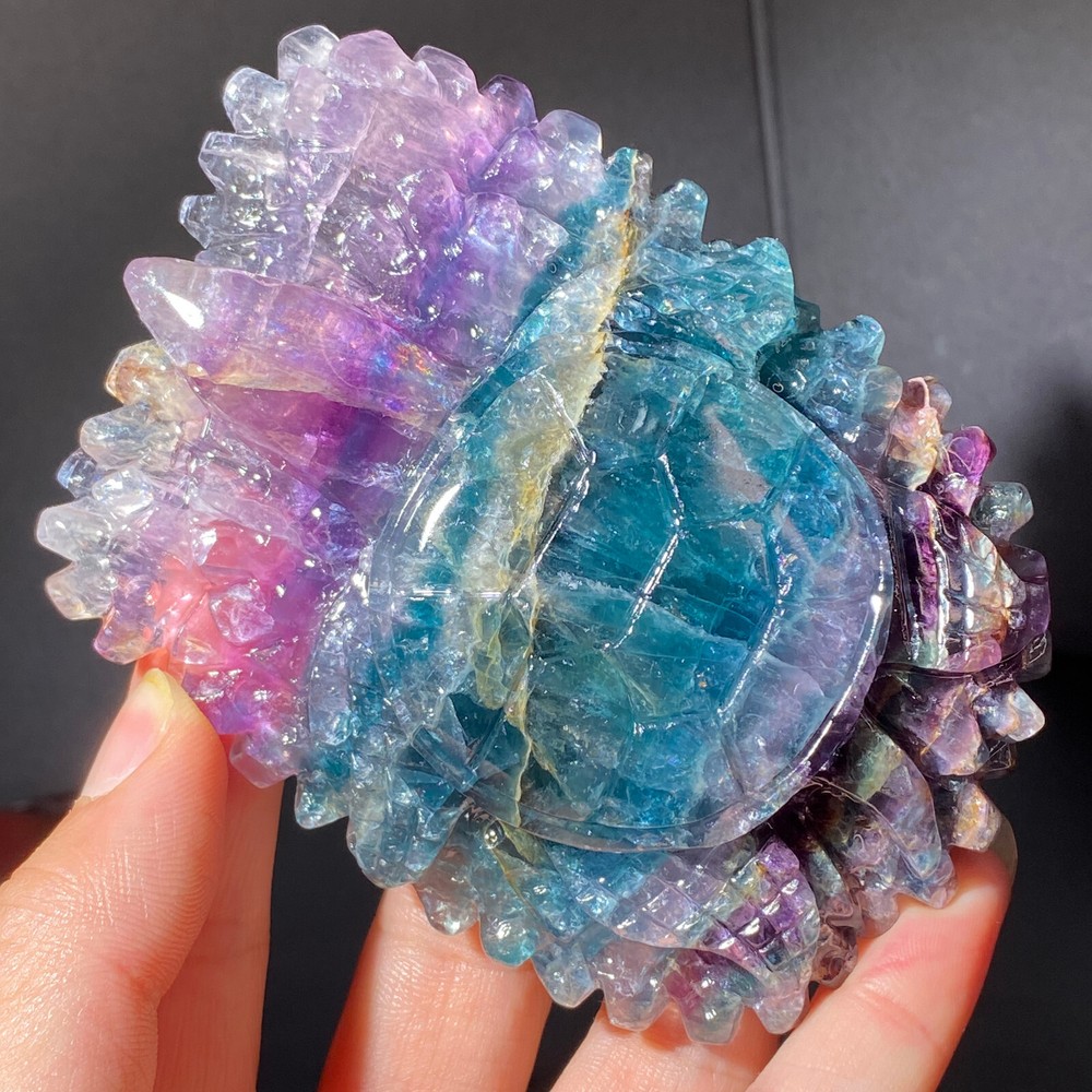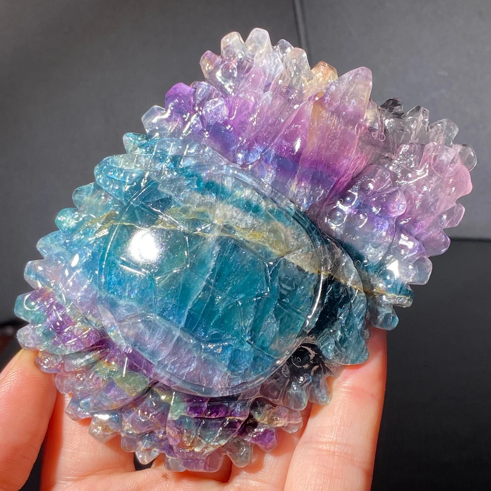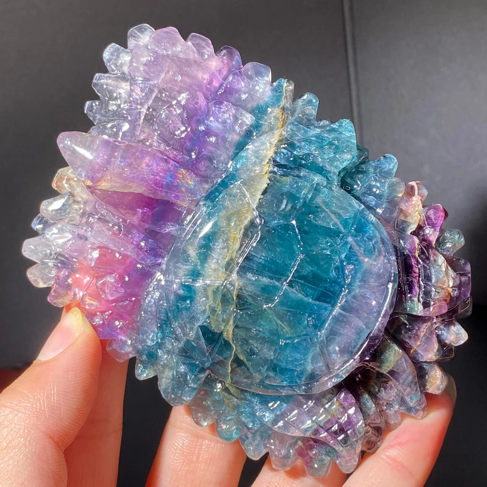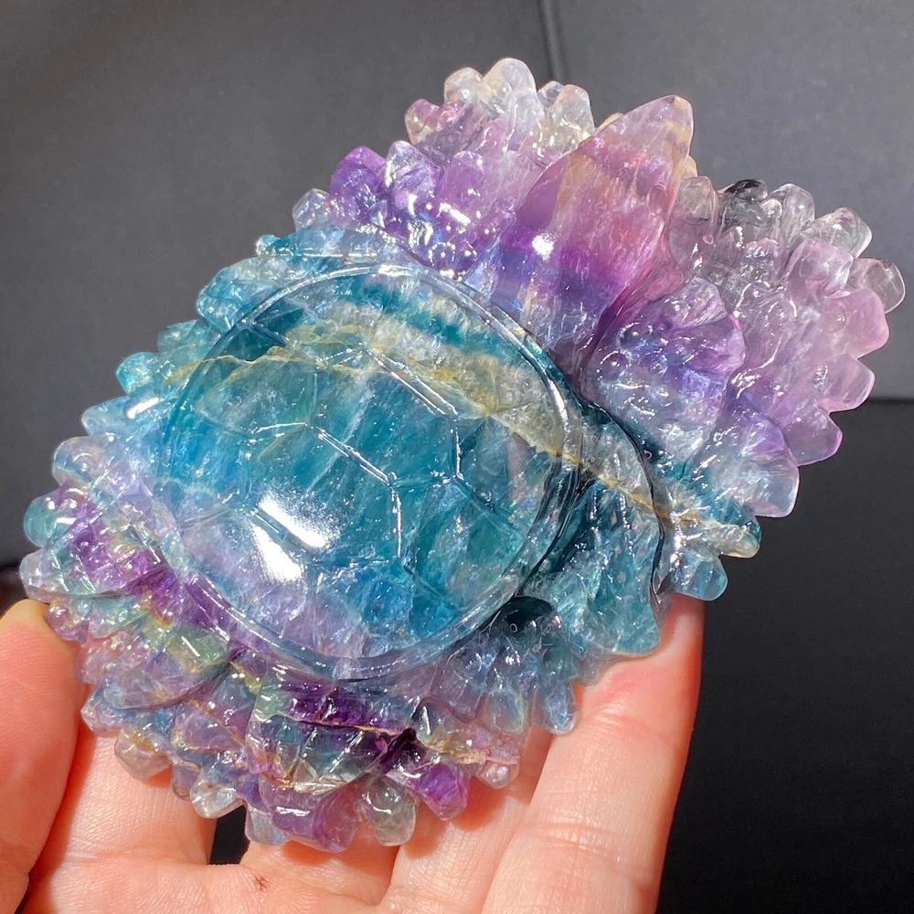 301g Natural Fluorite Ball Colorful Quartz Crystal Gemstone Healing Stone with Stand