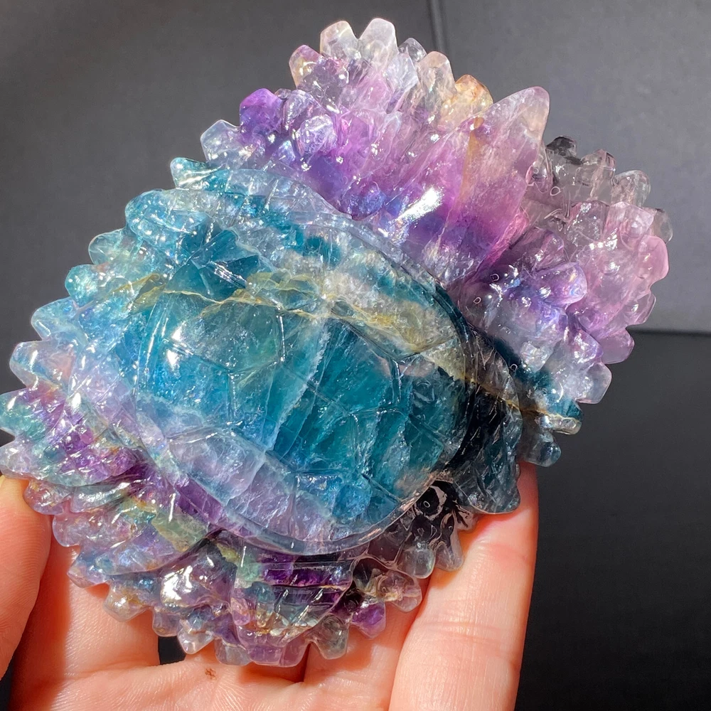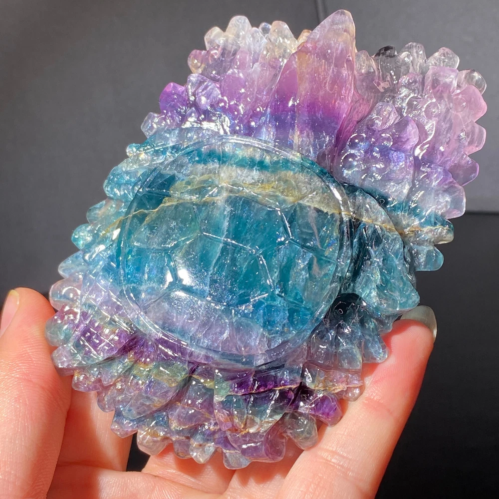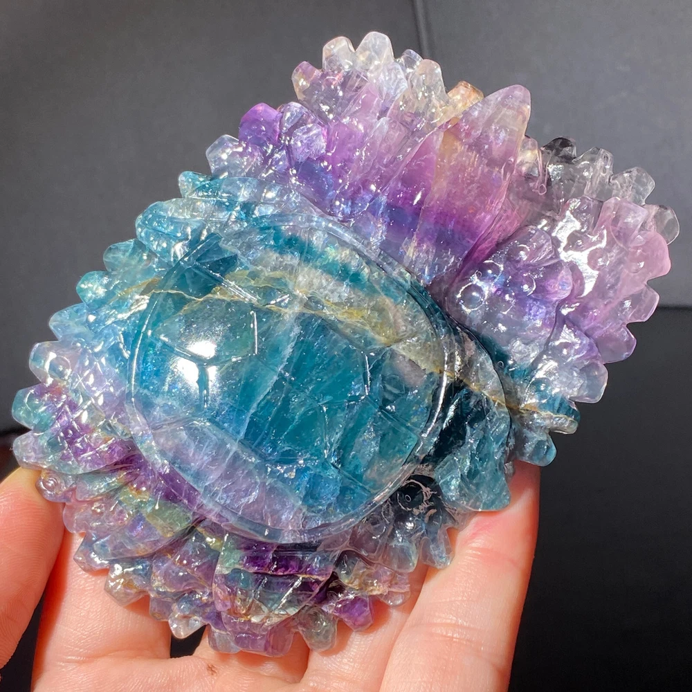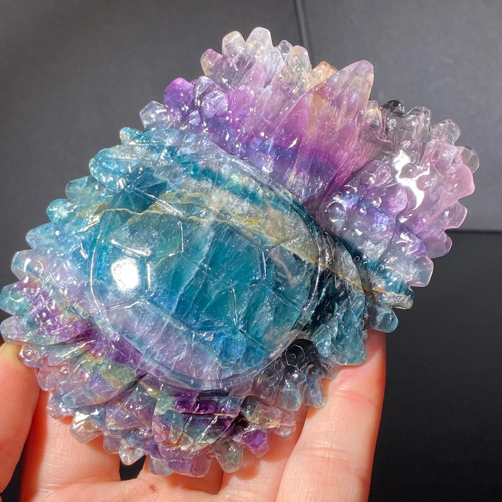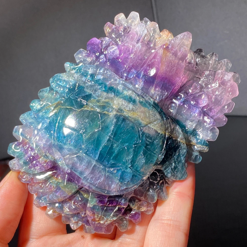 301g Natural Fluorite Ball Colorful Quartz Crystal Gemstone Healing Stone with Stand