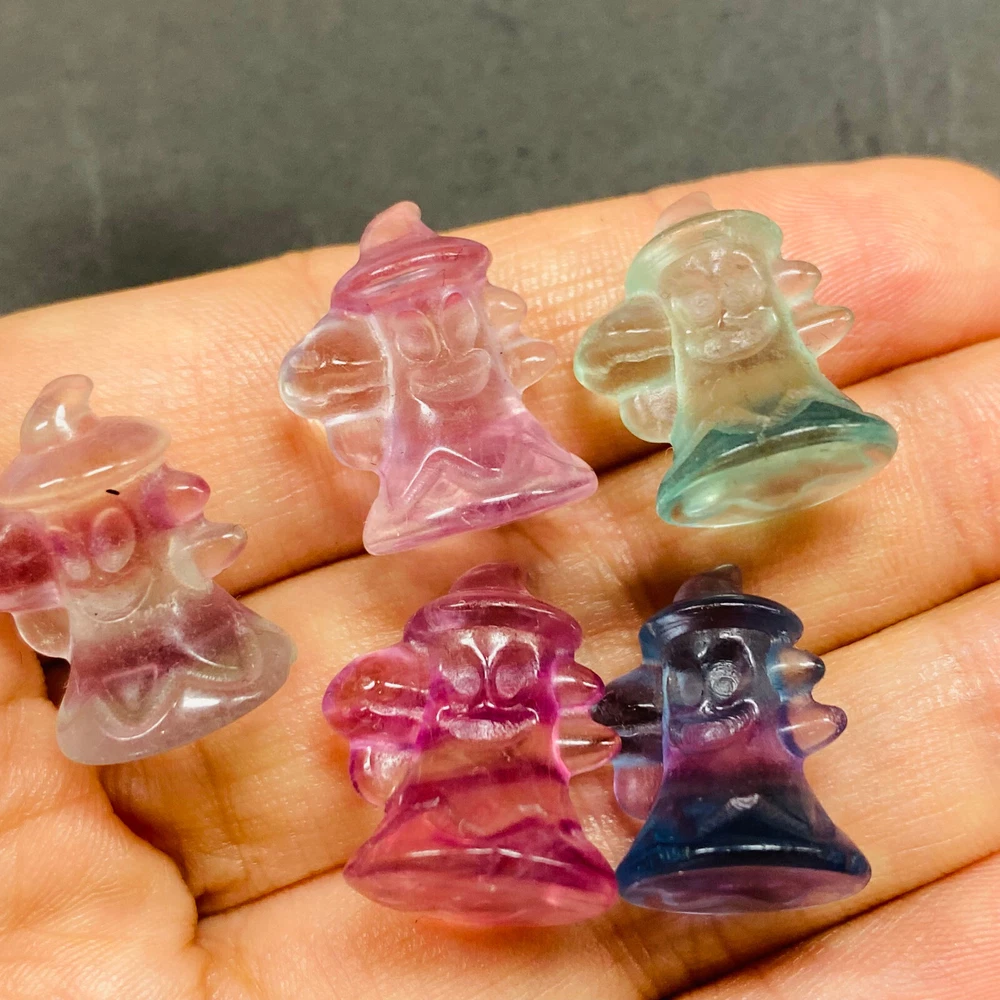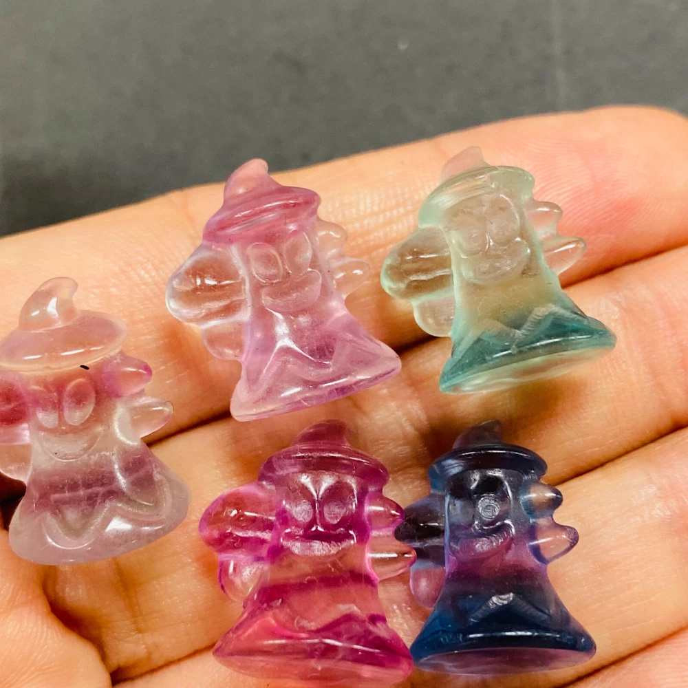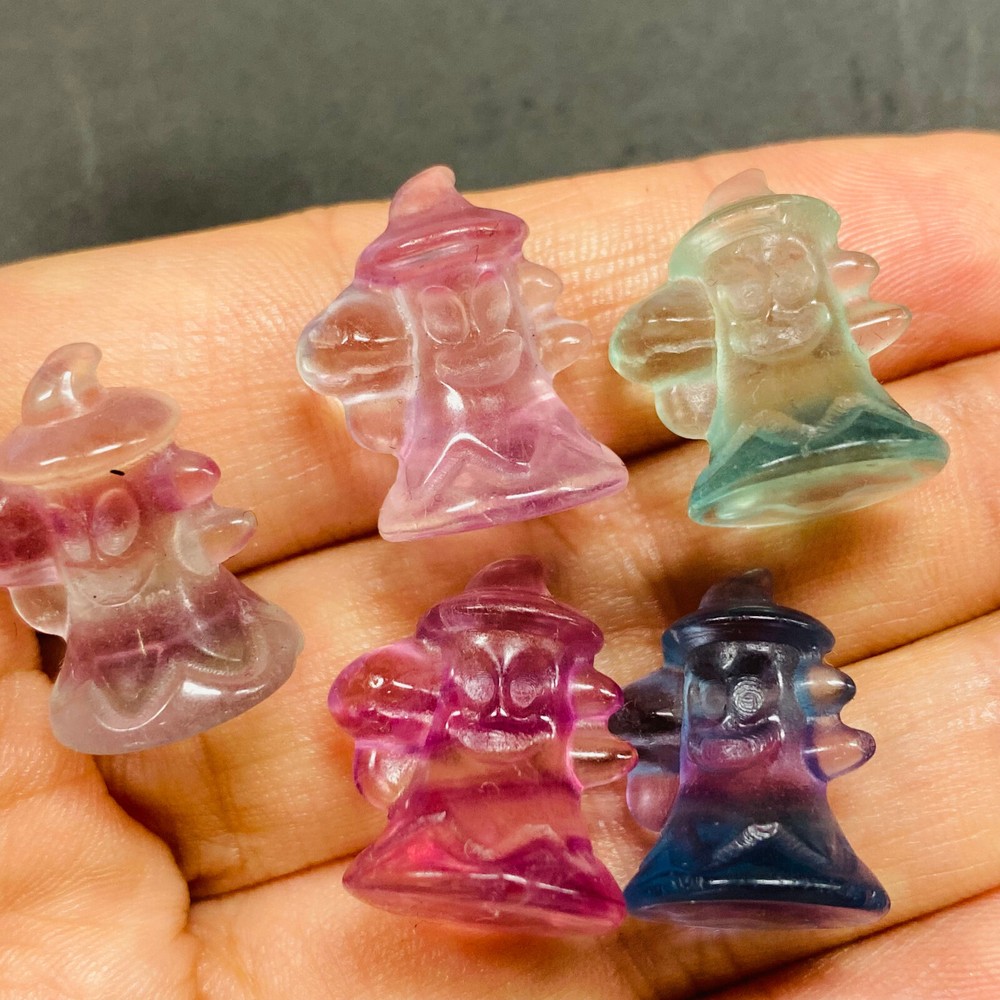 Natural Fluorite Quartz Mini Skull Set - Hand Carved Healing Crystals 5pc