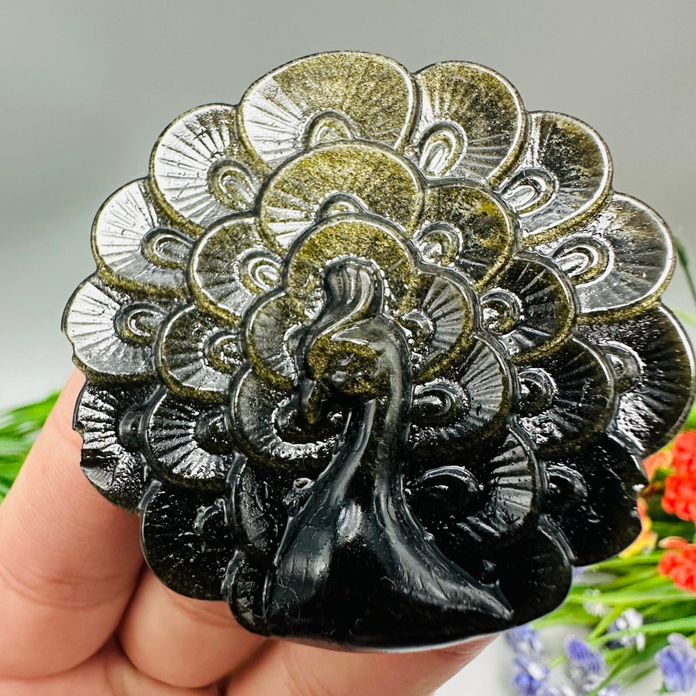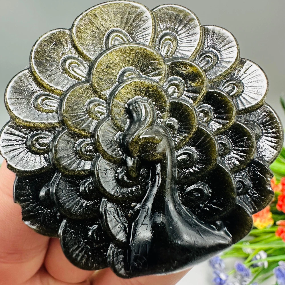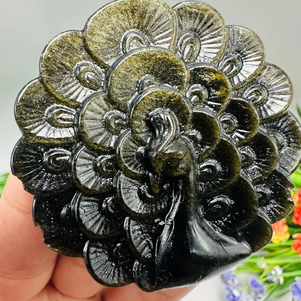 This stunning gold obsidian peacock quartz skull is a true masterpiece! The intricate details and natural shimmer make it a captivating centerpiece. Perfect for Reiki healing or as a unique decor piece, the craftsmanship is exceptional. It arrived quickly, well-packaged, and looks even better in person. A must-have for crystal collectors!