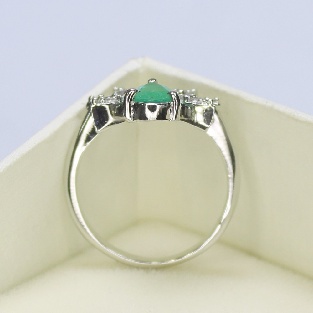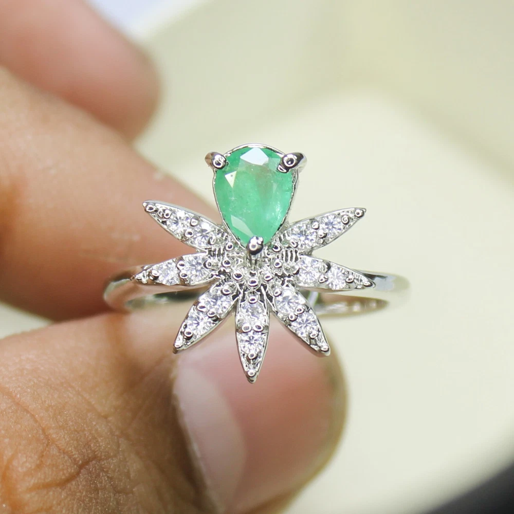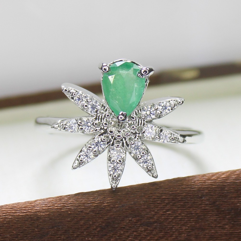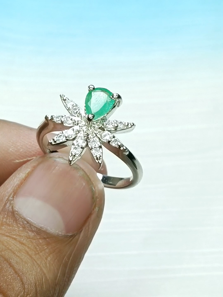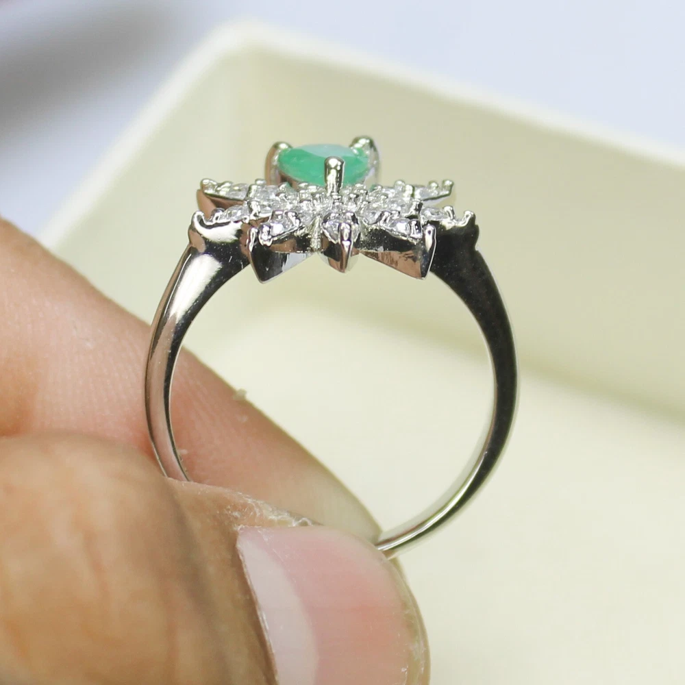ARBIYA GEMS JEWELRY TYPE: RING STONE: NATURAL GREEN EMERALD SIDE STONES: CUBIC ZIRCONIA RING SIZES: ALL SIZES AVAILABLE RING WEIGHT: 3.23 GRAMS RING METAL: STERLING SILVER METAL PURITY: 925 TREATMENT: NONE COUNTRY OF ORIGIN: INDIA HANDLING TIME: 1-2 DAYS DELIVERY TIME: WE USUALLY TAKES 15-25 DAYS BUT MOSTLY IT DELIVERS TO CUSTOMERS WITHIN 15 DAYS RETURN POLICY: RETURN ACCEPTED ON MANUFACTURING DEFECT WITHIN 30 DAYS. RETURN GIVEN AS MONEY BACK OR REPLACMENT FEEDBACK POLICY: PLEASE LEAVE US A POSITIVE FEEDBACK IF YOUR ITEMS DELIEVERED IN GOOD CONDITION
